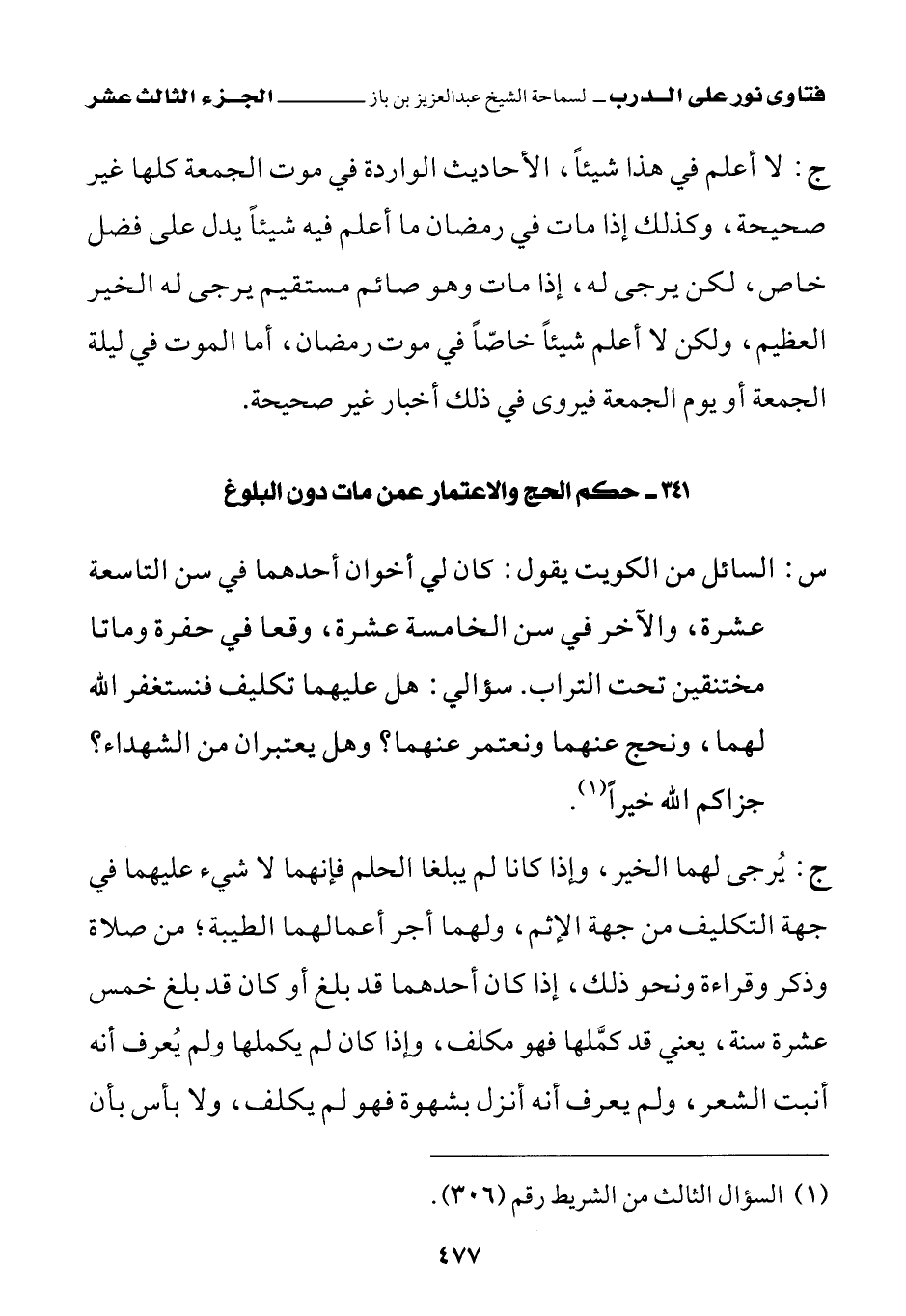 كتاب فتاوى نور على الدرب لابن باز بعناية الشويعر (اسم الجزء: 13)