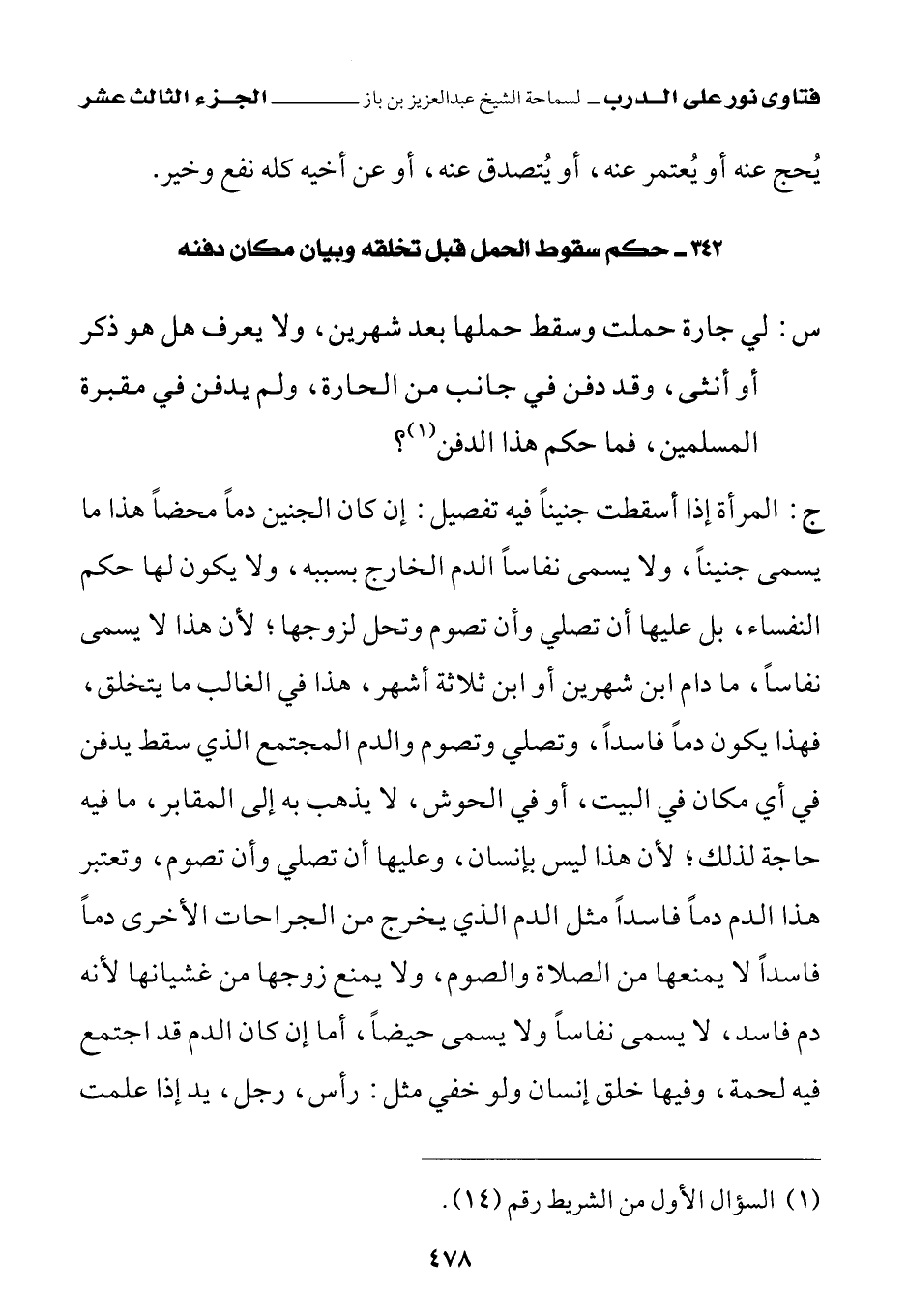 342 - حكم سقوط الحمل قبل تخلقه وبيان مكان دفنه