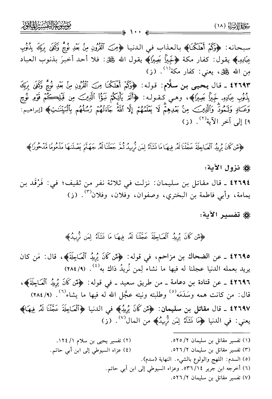 ٤٢٦٩٥ - عن الضحاك بن مزاحم، في قوله: {من كان يريد العاجلة}، قال: مَن كان يريد بعمله الدنيا عجلنا له فيها ما نشاء لِمن نُريدُ ذاك به (¬٤). (٩/ ٢٨٤)