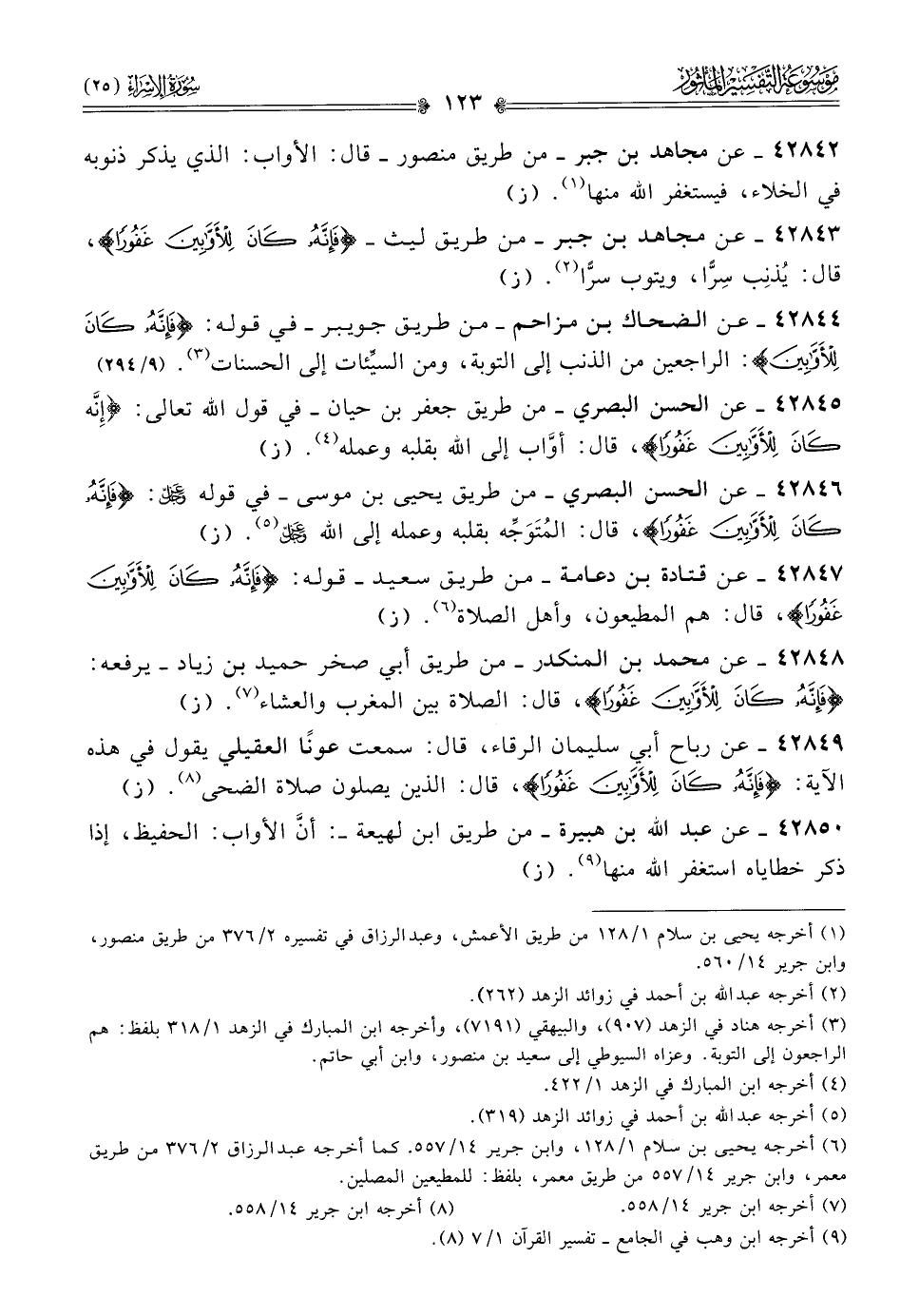 ٤٢٨٤٩ - عن رباح أبي سليمان الرقاء، قال: سمعت عونًا العقيلي يقول في هذه الآية: {فإنه كان للأوابين غفورا}، قال: الذين يصلون صلاة الضحى (¬٨). (ز)