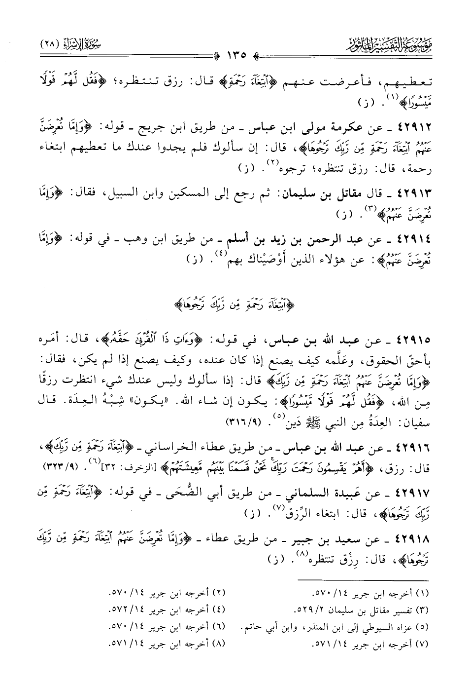 ٤٢٩١٢ - عن عكرمة مولى ابن عباس -من طريق ابن جريج- قوله: {وإما تعرضن عنهم ابتغاء رحمة من ربك ترجوها}، قال: إن سألوك فلم يجدوا عندك ما تعطيهم ابتغاء رحمة، قال: رزق تنتظره؛ ترجوه (¬٢). (ز)