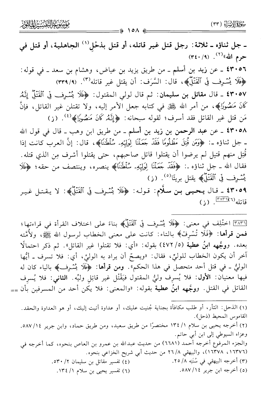 ٤٣٠٥٩ - قال يحيى بن سلّام: قوله: {فلا يسرف في القتل}: لا يقتل غير قاتله (¬٦) [٣٨٣٦]. (ز)