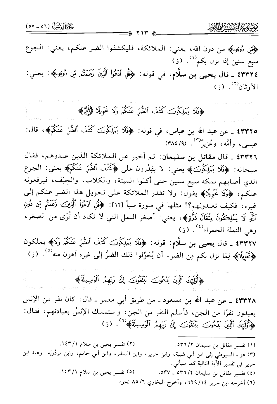 ٤٣٣٢٤ - قال يحيى بن سلّام، في قوله: {قل ادعوا الذين زعمتم من دونه}: يعني: الأوثان (¬٢). (ز)