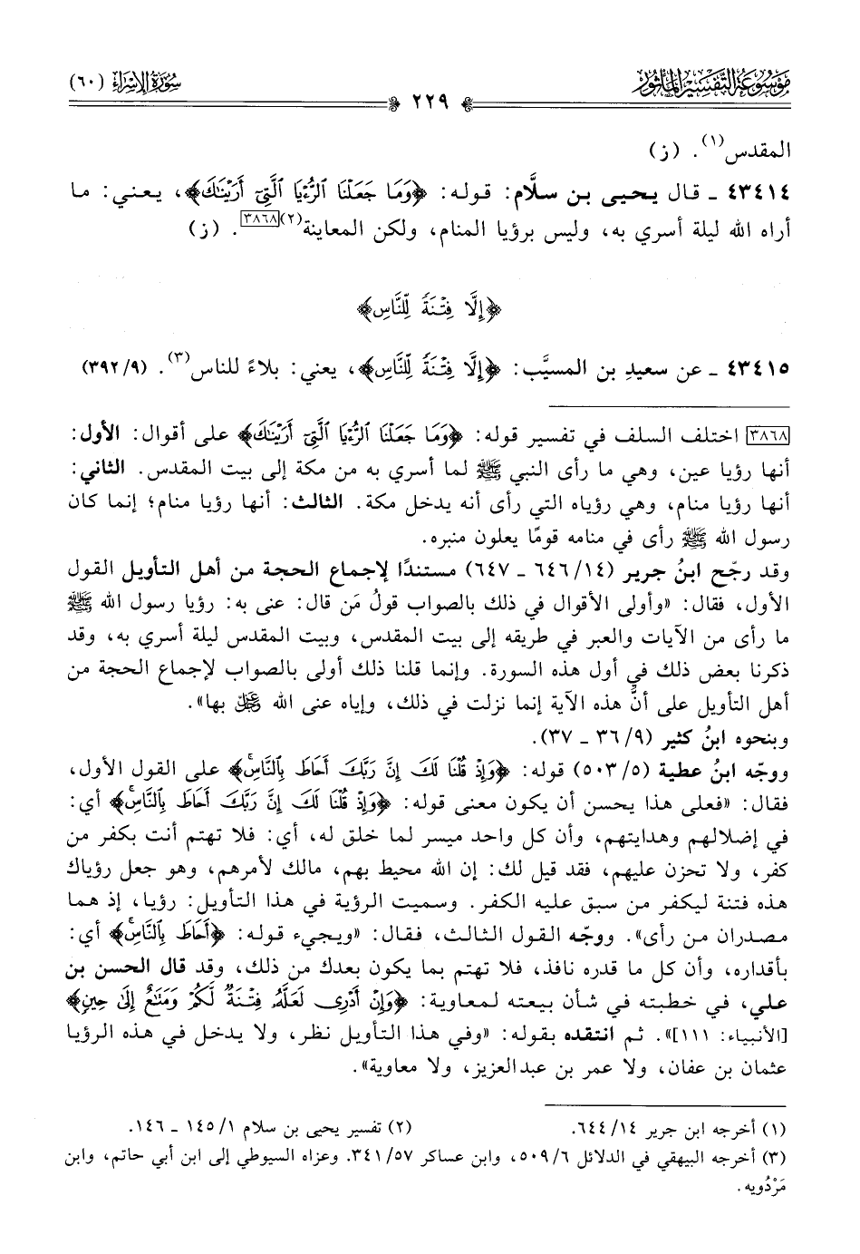 ٤٣٤١٤ - قال يحيى بن سلّام: قوله: {وما جعلنا الرؤيا التي أريناك}، يعني: ما أراه الله ليلة أسري به، وليس برؤيا المنام، ولكن المعاينة (¬٢) [٣٨٦٨]. (ز)