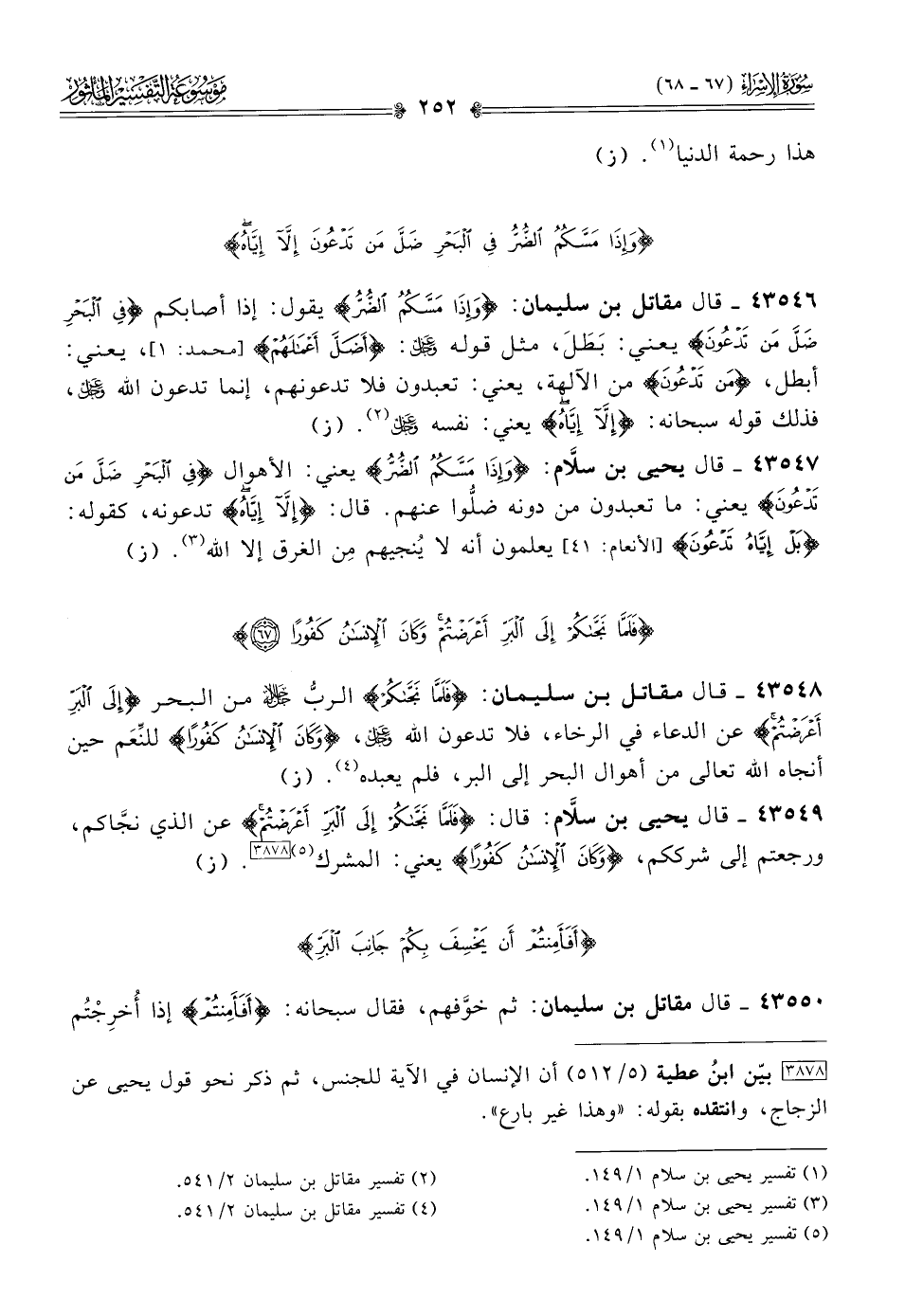 ٤٣٥٤٩ - قال يحيى بن سلّام: قال: {فلما نجاكم إلى البر أعرضتم} عن الذي نجّاكم، ورجعتم إلى شرككم، {وكان الإنسان كفورا} يعني: المشرك (¬٥) [٣٨٧٨]. (ز)