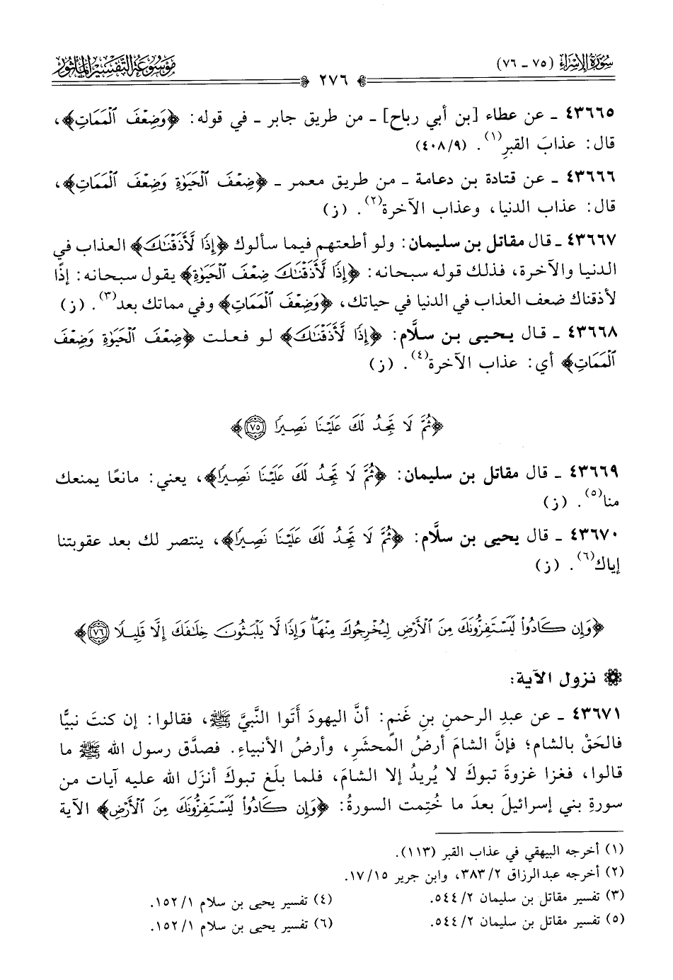 ٤٣٦٦٨ - قال يحيى بن سلّام: {إذا لأذقناك} لو فعلت {ضعف الحياة وضعف الممات} أي: عذاب الآخرة (¬٤). (ز)