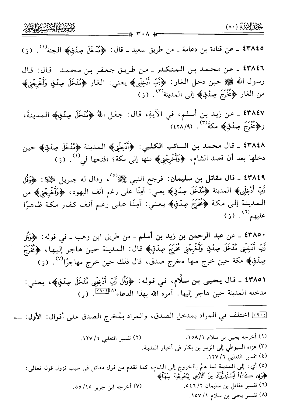٤٣٨٤٧ - عن زيد بن أسلم، في الآيةِ، قال: جعَل اللهُ {مُدْخَلَ صِدقٍ} المدينةَ، و {مُخرَجَ صِدقٍ} مكةَ (¬٣). (٩/ ٤٢٨)