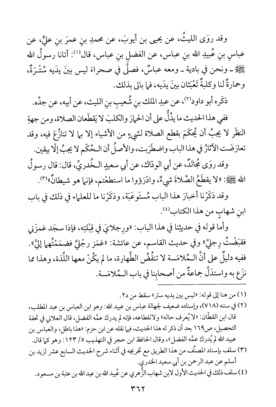 وقد روَى الليثُ، عن يحيى بن أيوبَ، عن محمدِ بنِ عمرَ بنِ عليٍّ، عن عباسِ بنِ عُبيدِ اللَّه بنِ عباس، عن الفضلِ بنِ عباس، قال (¬١): أتانا رسولُ اللَّه -صلى اللَّه عليه وسلم- ونحن في بادية- ومعه عباسٌ، فصلَّى في صحراءَ ليس بينَ يدَيه سُتْرَةٌ، وحمارةٌ لنا وكلبةٌ تَعْبَثان بينَ يدَيه، فما بالى بذلك.