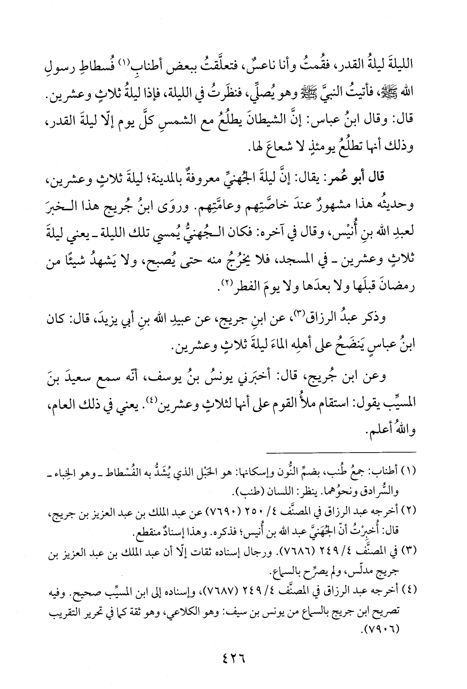 وذكر عبدُ الرزاق (¬٣)، عن ابنِ جريج، عن عبيدِ اللَّه بنِ أبي يزيدَ، قال: كان ابنُ عباسٍ يَنضَحُ على أهلِه الماءَ ليلةَ ثلاثٍ وعشرين.