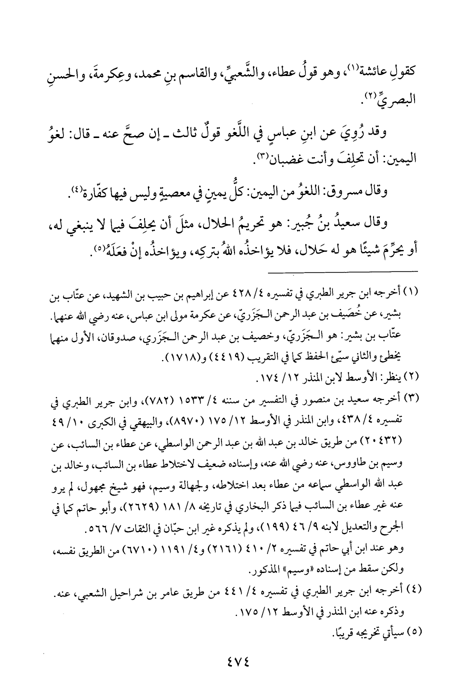 وقال سعيدُ بنُ جُبير: هو تحريمُ الحلال، مثلَ أن يحلِفَ فيما لا ينبغي له، أو يحرِّمَ شيئًا هو له حَلال، فلا يؤاخذُه اللَّهُ بتركِه، ويؤاخذُه إنْ فعَلَهُ (¬٥).