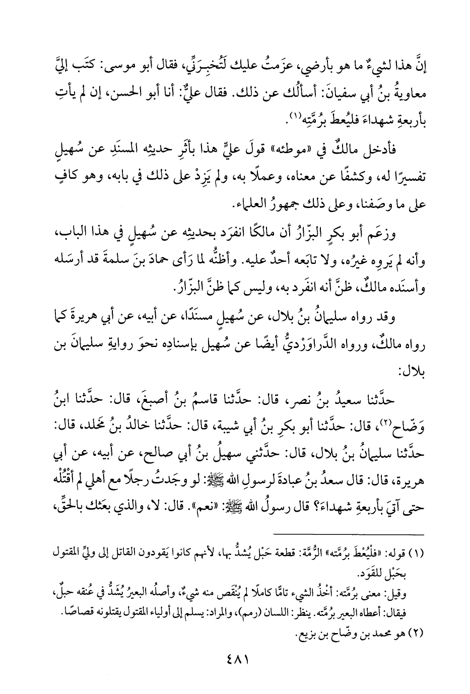 وزعَم أبو بكرٍ البزّارُ أن مالكًا انفرَد بحديثه عن سُهيلٍ في هذا الباب، وأنه لم يَروِه غيرُه، ولا تابَعه أحدٌ عليه. وأظنُّه لما رَأى حمادَ بنَ سلمةَ قد أرسَله وأسنَده مالكٌ، ظنَّ أنه انفَرد به، وليس كما ظنَّ البزّارُ.