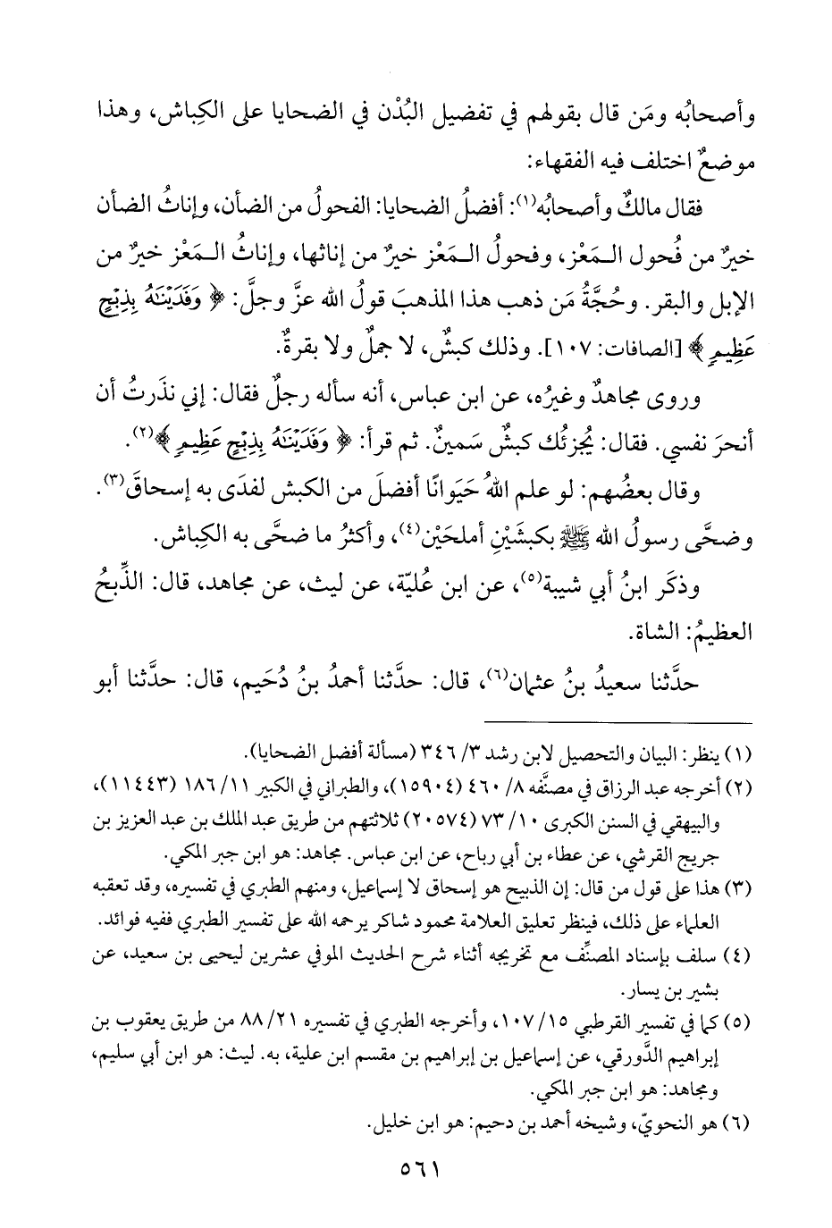 (¬١) ينظر: البيان والتحصيل لابن رشد ٣/ ٣٤٦ (مسألة أفضل الضحايا).