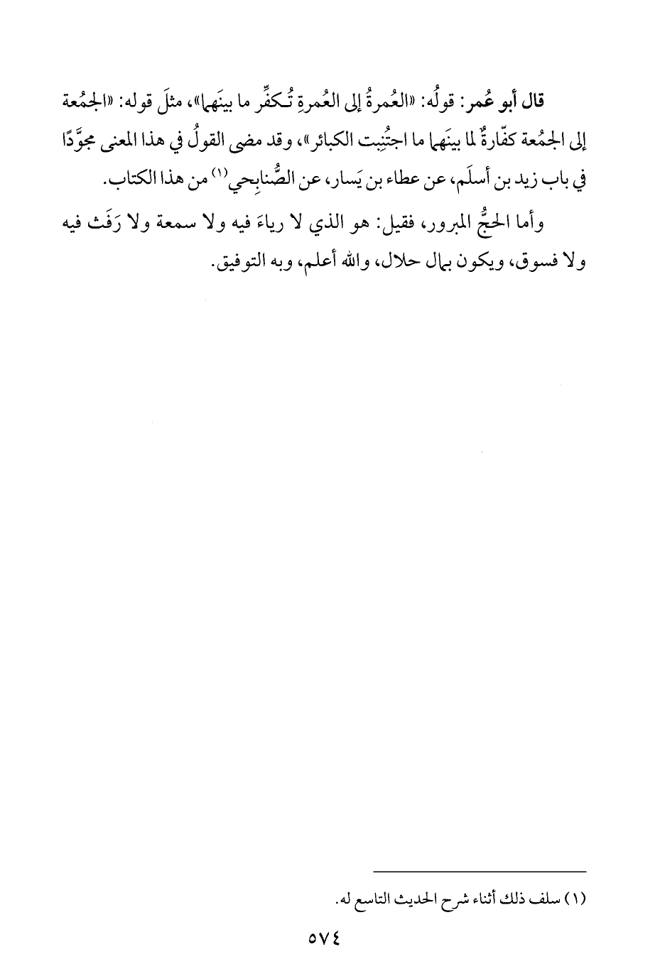 قال أبو عُمر: قولُه: "العُمرةُ إلى العُمرةِ تُكفِّر ما بينَهما"، مثلَ قوله: "الجمُعة إلى الجمُعة كفّارةٌ لما بينَهما ما اجتُنِبت الكبائر"، وقد مضى القولُ في هذا المعنى مجوَّدًا في باب زيد بن أسلَم، عن عطاء بن يَسار، عن الصُّنابِحي (¬١) من هذا الكتاب.