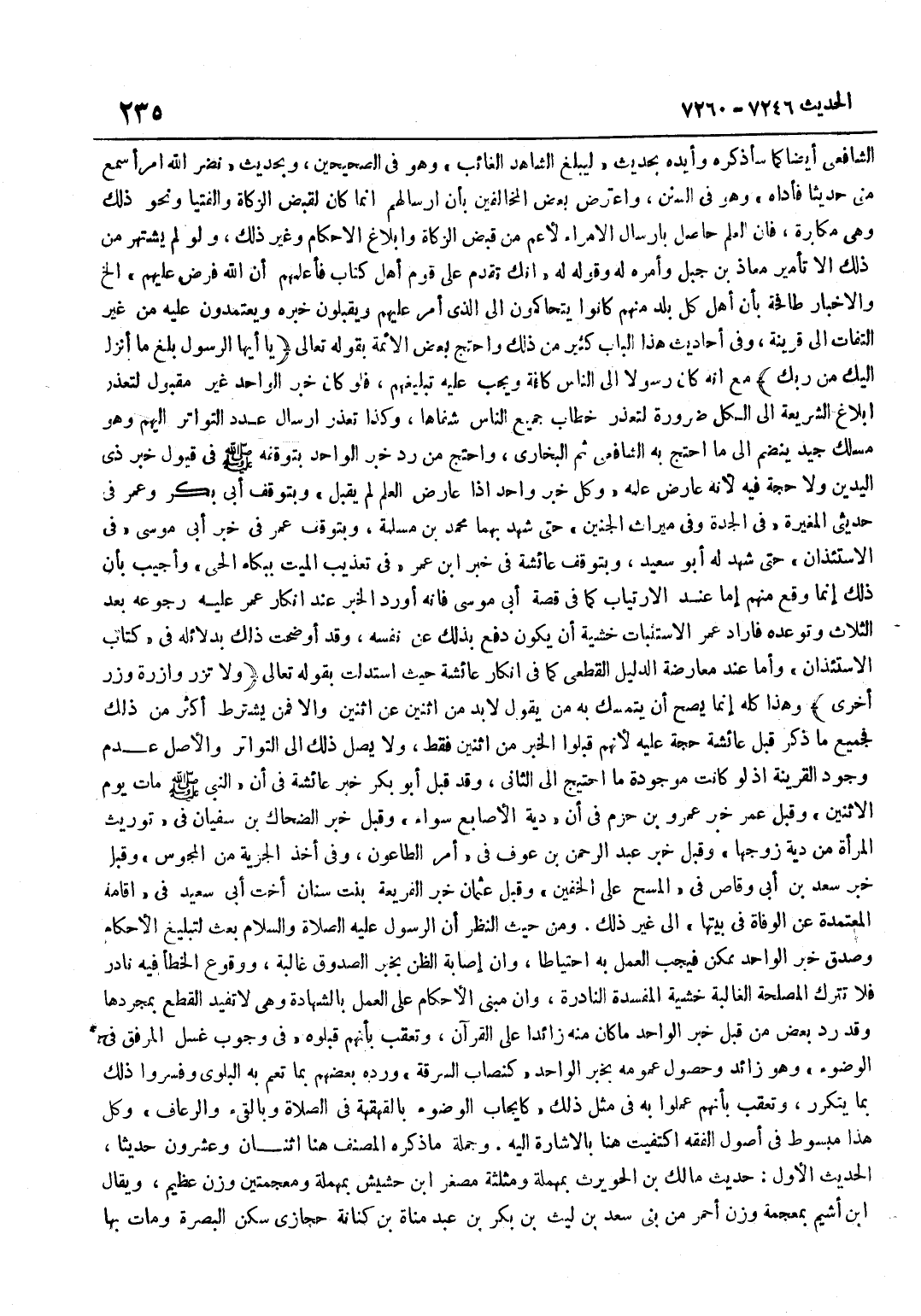 الشَّافِعِيُّ أَيْضًا كَمَا سَأَذْكُرُهُ وَأَيَّدَهُ بِحَدِيثِ لِيُبَلِّغِ الشَّاهِدُ الْغَائِبَ وَهُوَ فِي الصَّحِيحَيْنِ وَبِحَدِيثِ نَضَّرَ اللَّهُ امْرَأً سَمِعَ مِنِّي حَدِيثًا فَأَدَّاهُ وَهُوَ فِي السُّنَنِ وَاعْتَرَضَ بَعْضُ الْمُخَالِفِينَ بِأَنَّ إِرْسَالَهُمْ إِنَّمَا كَانَ لِقَبْضِ الزَّكَاةِ وَالْفُتْيَا وَنَحْوِ ذَلِكَ وَهِيَ مُكَابَرَةٌ فَإِنَّ الْعِلْمَ حَاصِلٌ بِإِرْسَالِ الْأُمَرَاءِ لِأَعَمَّ مِنْ قَبْضِ الزَّكَاةِ وَإِبْلَاغِ الْأَحْكَامِ وَغَيْرِ ذَلِكَ وَلَوْ لَمْ يَشْتَهِرْ مِنْ ذَلِكَ إِلَّا تَأْمِيرُ مُعَاذِ بْنِ جَبَلٍ وَأَمْرُهُ لَهُ وَقَوْلُهُ لَهُ إِنَّكَ تَقْدَمُ عَلَى قَوْمٍ أَهْلِ كِتَابٍ فَأَعْلِمْهُمْ أَنَّ اللَّهَ فَرَضَ عَلَيْهِمْ إِلَخْ وَالْأَخْبَارُ طَافِحَةٌ بِأَنَّ أَهْلَ كُلِّ بَلَدٍ مِنْهُمْ كَانُوا يَتَحَاكَمُونَ إِلَى الَّذِي أُمِّرَ عَلَيْهِمْ وَيَقْبَلُونَ خَبَرَهُ وَيَعْتَمِدُونَ عَلَيْهِ مِنْ غَيْرِ الْتِفَاتٍ إِلَى قَرِينَةٍ وَفِي أَحَادِيثِ هَذَا الْبَابِ كَثِيرٌ مِنْ ذَلِكَ وَاحْتَجَّ بَعْضُ الْأَئِمَّةِ بِقَوْلِهِ تَعَالَى يَا أَيُّهَا الرَّسُولُ بَلِّغْ مَا أُنْزِلَ إِلَيْكَ مِنْ رَبِّكَ مَعَ أَنَّهُ كَانَ رَسُولًا إِلَى النَّاسِ كَافَّةً وَيَجِبُ عَلَيْهِ تَبْلِيغُهُمْ فَلَوْ كَانَ خَبَرُ الْوَاحِدِ غَيْرَ مَقْبُولٍ لَتَعَذَّرَ إِبْلَاغُ الشَّرِيعَةِ إِلَى الْكُلِّ ضَرُورَةً لِتَعَذُّرِ خِطَابِ جَمِيعِ النَّاسِ شِفَاهًا وَكَذَا تَعَذُّرُ إِرْسَالِ عَدَدِ التَّوَاتُرِ إِلَيْهِمْ وَهُوَ مَسْلَكٌ جَيِّدٌ يَنْضَمُّ إِلَى مَا احْتَجَّ بِهِ الشَّافِعِيُّ ثُمَّ الْبُخَارِيُّ وَاحْتَجَّ مَنْ رَدَّ خَبَرَ الْوَاحِدِ بِتَوَقُّفِهِ صَلَّى اللَّهُ عَلَيْهِ وَسَلَّمَ فِي قَبُولِ خَبَرِ ذِي الْيَدَيْنِ وَلَا حُجَّةَ فِيهِ لِأَنَّهُ عَارَضَ عِلْمَهُ وَكُلُّ خَبَرٍ وَاحِدٍ إِذَا عَارَضَ الْعِلْمَ لَمْ يُقْبَلْ وَبِتَوَقُّفِ أَبِي بَكْرٍ وَعُمَرَ فِي حَدِيثَيِ الْمُغِيرَةِ فِي الْجَدَّةِ وَفِي مِيرَاثِ الْجَنِينِ حَتَّى شَهِدَ بِهِمَا مُحَمَّدُ بْنُ مَسْلَمَةَ وَبِتَوَقُّفِ عُمَرَ فِي خَبَرِ أَبِي مُوسَى فِي الاسْتِئْذَان حَتَّى شهد لَهُ أَبُو سعيد وبتوقف عَائِشَة فِي خبر بن عُمَرَ فِي تَعْذِيبِ الْمَيِّتِ بِبُكَاءِ الْحَيِّ وَأُجِيبَ بِأَنَّ ذَلِكَ إِنَّمَا وَقَعَ مِنْهُمْ إِمَّا عِنْدَ الِارْتِيَابِ كَمَا فِي قِصَّةِ أَبِي مُوسَى فَإِنَّهُ أَوْرَدَ الْخَبَرَ عِنْدَ إِنْكَارِ عُمَرَ عَلَيْهِ رُجُوعَهُ بَعْدَ الثَّلَاثِ وَتَوَعُّدِهُ فَأَرَادَ عُمَرُ الِاسْتِثْبَاتَ خَشْيَةَ أَنْ يَكُونَ دَفَعَ بِذَلِكَ عَنْ نَفْسِهِ وَقَدْ أَوْضَحْتُ ذَلِكَ بِدَلَائِلِهِ فِي كِتَابِ الِاسْتِئْذَانِ وَأَمَّا عِنْدَ مُعَارَضَةِ الدَّلِيلِ الْقَطْعِيِّ كَمَا فِي إِنْكَارِ عَائِشَةَ حَيْثُ اسْتَدَلَّتْ بِقَوْلِهِ تَعَالَى وَلَا تَزِرُ وَازِرَةٌ وِزْرَ أُخْرَى وَهَذَا كُلُّهُ إِنَّمَا يَصِحُّ أَنْ يَتَمَسَّكَ بِهِ مَنْ يَقُولُ لَا بُدَّ مِنَ اثْنَيْنِ عَنِ اثْنَيْنِ وَإِلَّا فَمَنْ يَشْتَرِطُ أَكْثَرَ مِنْ ذَلِكَ فَجَمِيعُ مَا ذُكِرَ قَبْلَ عَائِشَةَ حُجَّةٌ عَلَيْهِ لأَنهم قبلو االخبر مِنَ اثْنَيْنِ فَقَطْ وَلَا يَصِلُ ذَلِكَ إِلَى التَّوَاتُرِ وَالْأَصْلُ عَدَمُ وُجُودِ الْقَرِينَةِ إِذْ لَوْ كَانَتْ مَوْجُودَةً مَا احْتِيجَ إِلَى الثَّانِي وَقَدْ قَبِلَ أَبُو بَكْرٍ خَبَرَ عَائِشَةَ فِي أَنَّ النَّبِيَّ صَلَّى اللَّهُ عَلَيْهِ وَسَلَّمَ مَاتَ يَوْمَ الِاثْنَيْنِ وَقَبِلَ عُمَرُ خَبَرَ عَمْرِو بْنِ حَزْمٍ فِي أَنَّ دِيَةَ الْأَصَابِعِ سَوَاءٌ وَقَبِلَ خَبَرَ الضَّحَّاك بن سُفْيَان فِي تَوْرِيث الْمَرْأَة من دِيَةِ 