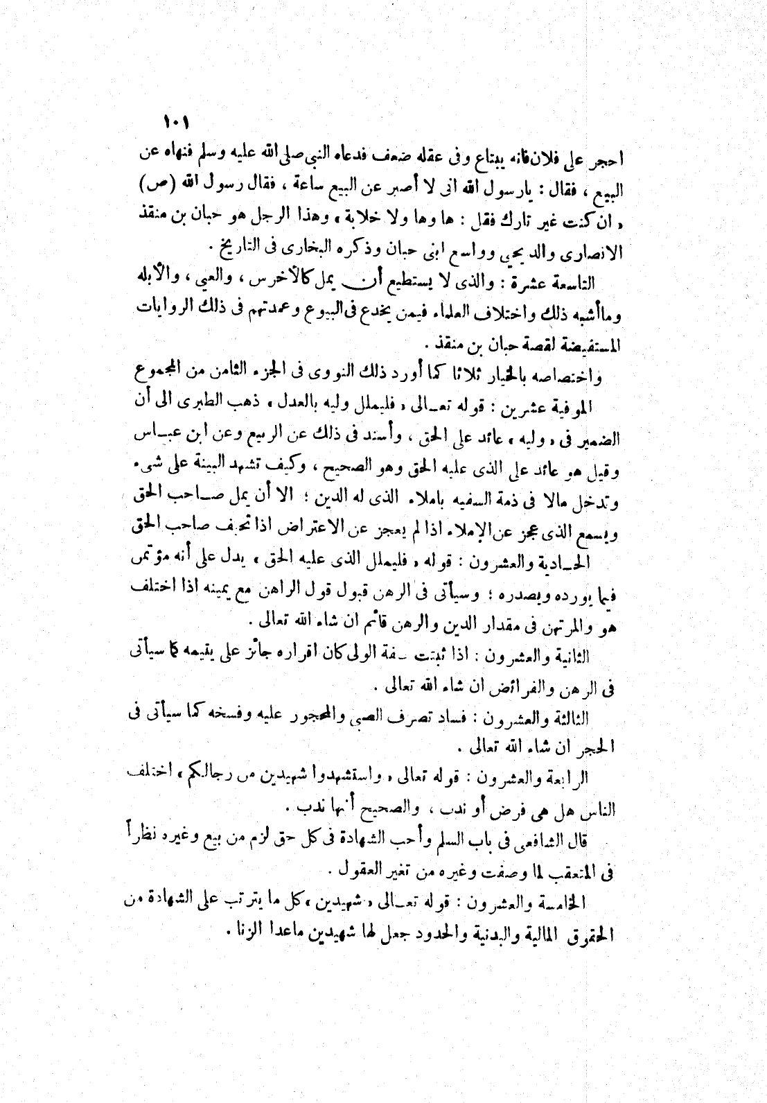 التاسعة عشرة: والذى لا يستطيع أن يمل كالاخرس والعيى، والابله وما أشبه ذلك واختلاف العلماء فيمن يخدع في البيوع وعمدتهم في ذلك الروايات المستفيضة لقصة حبان بن منقذ.
