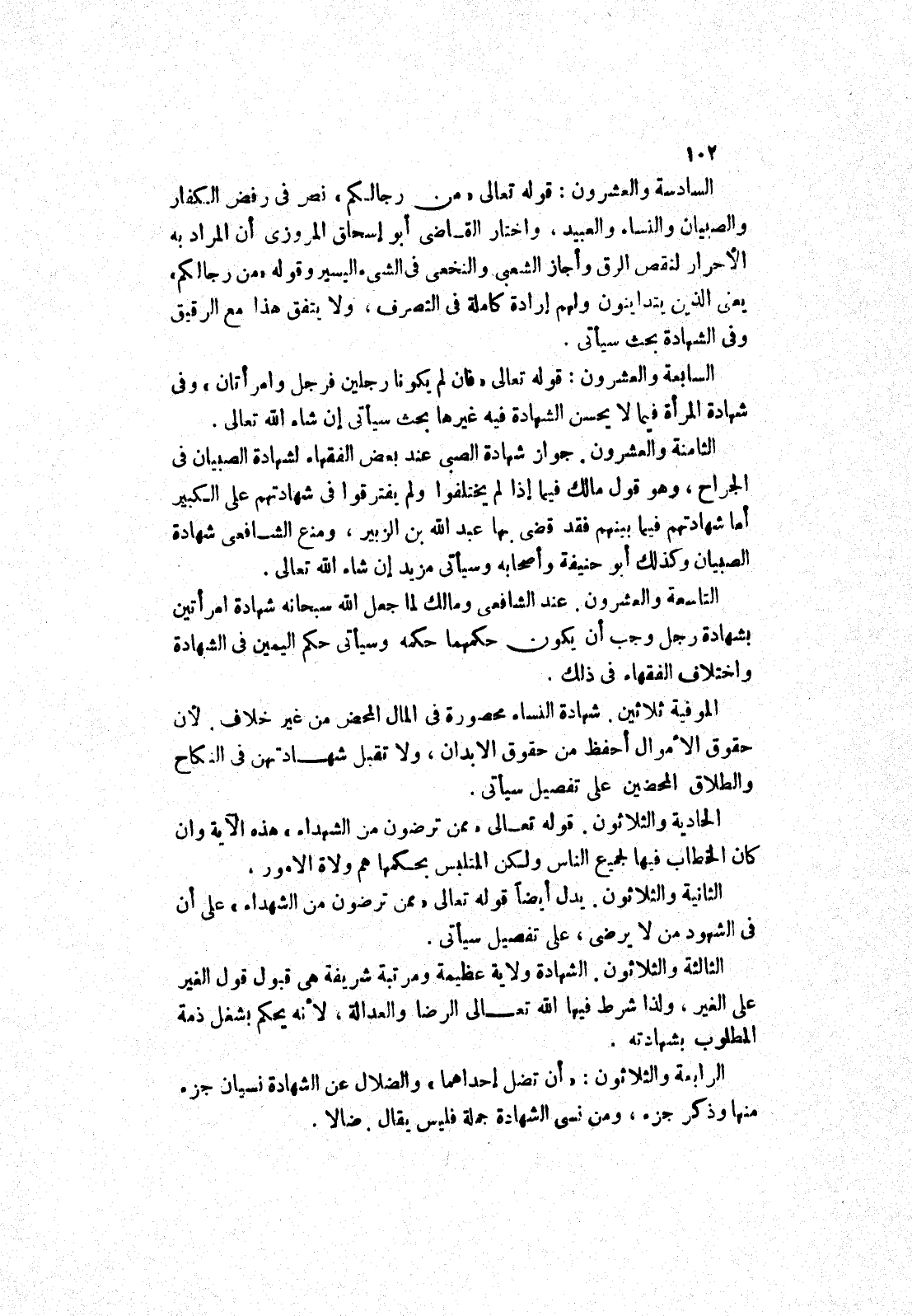 السادسة والعشرون: قوله تعالى " من رجالكم " نص في رفض الكفار والصبيان والنساء والعبيد، واختار القاضى أبو إسحاق المروزى أن المراد به الاحرار لنقص الرق وأجاز الشعبى والنخعي في الشئ اليسير وقوله " من رجالكم " يعنى الذين يتداينون ولهم إرادة كاملة في التصرف، ولا يتفق هذا مع الرقيق وفى الشهادة بحث سيأتي.