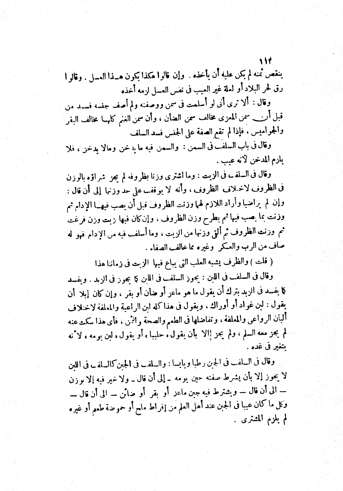 (قلت) والظرف يشبه العلب التى يباع فيها الزيت في زماننا هذا وقال في السلف في اللبن: يجوز السلف في اللبن كما يجوز في الزبد.