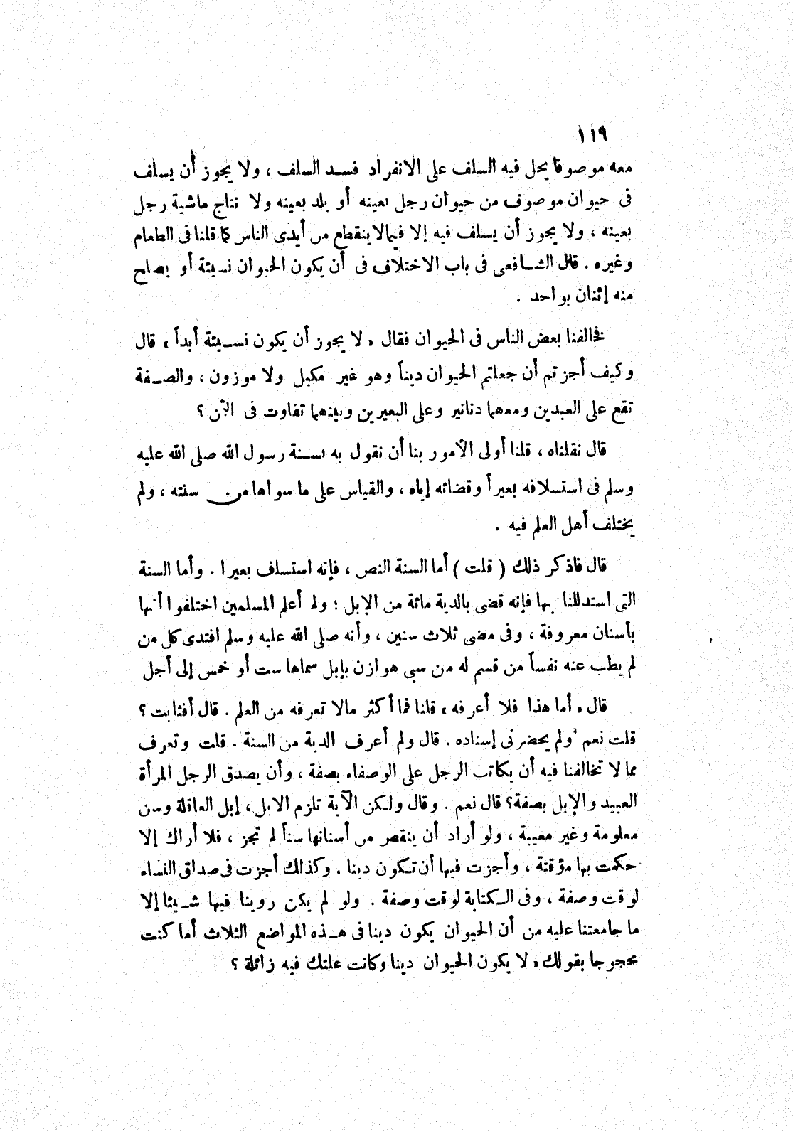 ولو لم يكن روينا فيها شيئا إلا ما جامعتنا عليه من أن الحيوان يكون دينا في هذه المواضع الثلاث أما كنت محجوجا بقولك " لا يكون الحيوان دينا وكانت علتك فيه زائلة؟