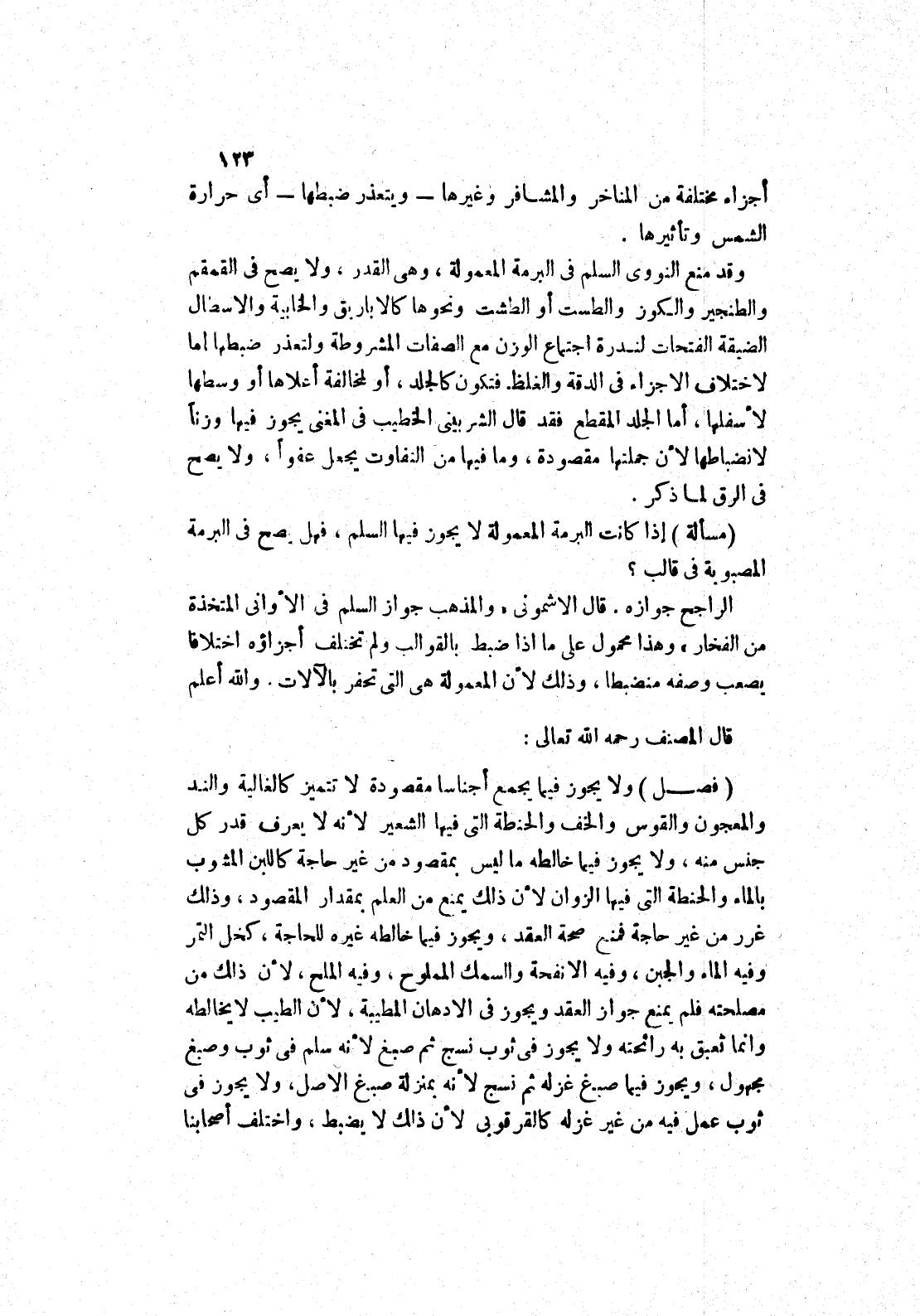 (مسألة) إذا كانت البرمة المعمولة لا يجوز فيها السلم، فهل يصح في البرمة المصبوبة في قالب؟ الراجح جوازه.