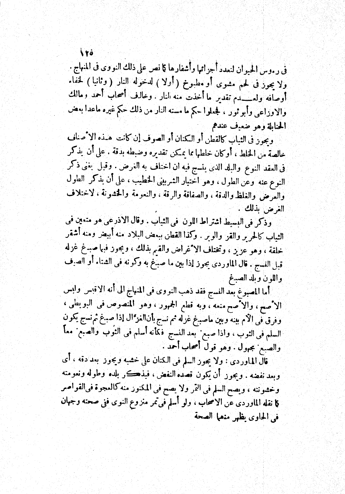 قال الماوردى: ولا يجوز السلم في الكتان على خشبه ويجوز بعد دقه، أي وبعد نفضه.