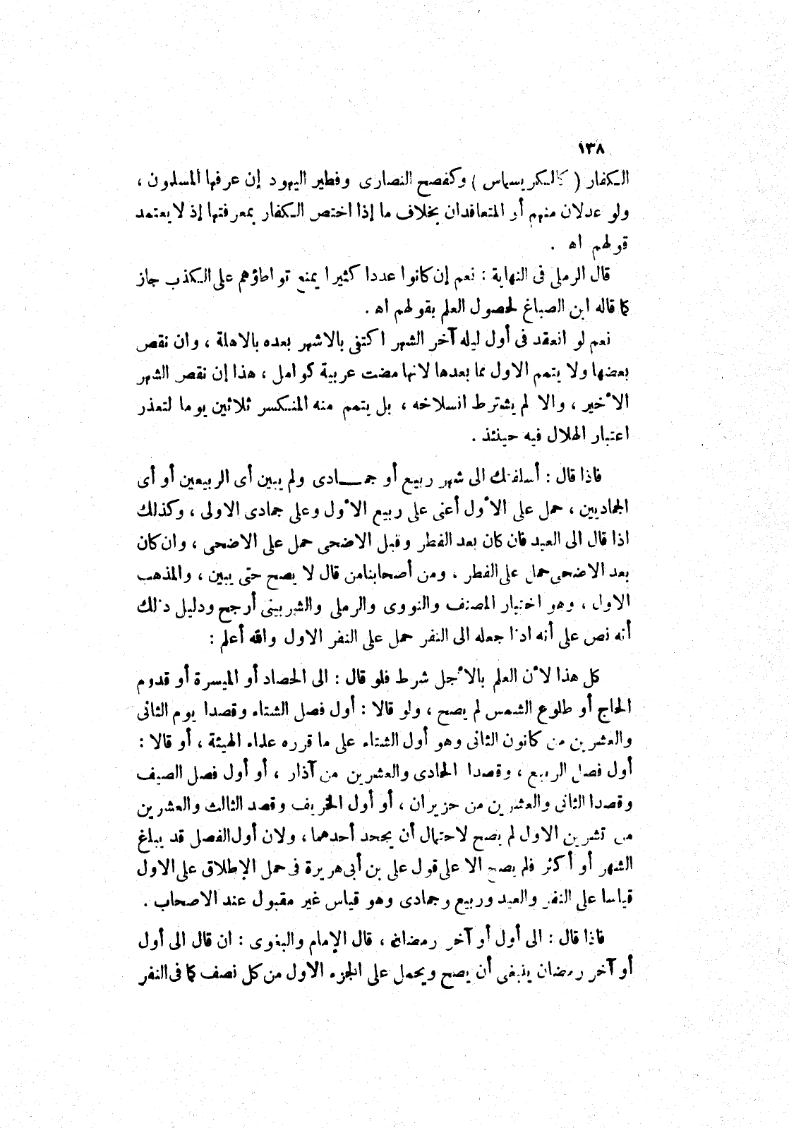 فإذا قال: إلى أول أو آخر رمضان، قال الامام والبغوى: ان قال إلى أول أو آخر رمضان ينبغى أن يصح ويحمل على الجزء الاول من كل نصف كما في النفر