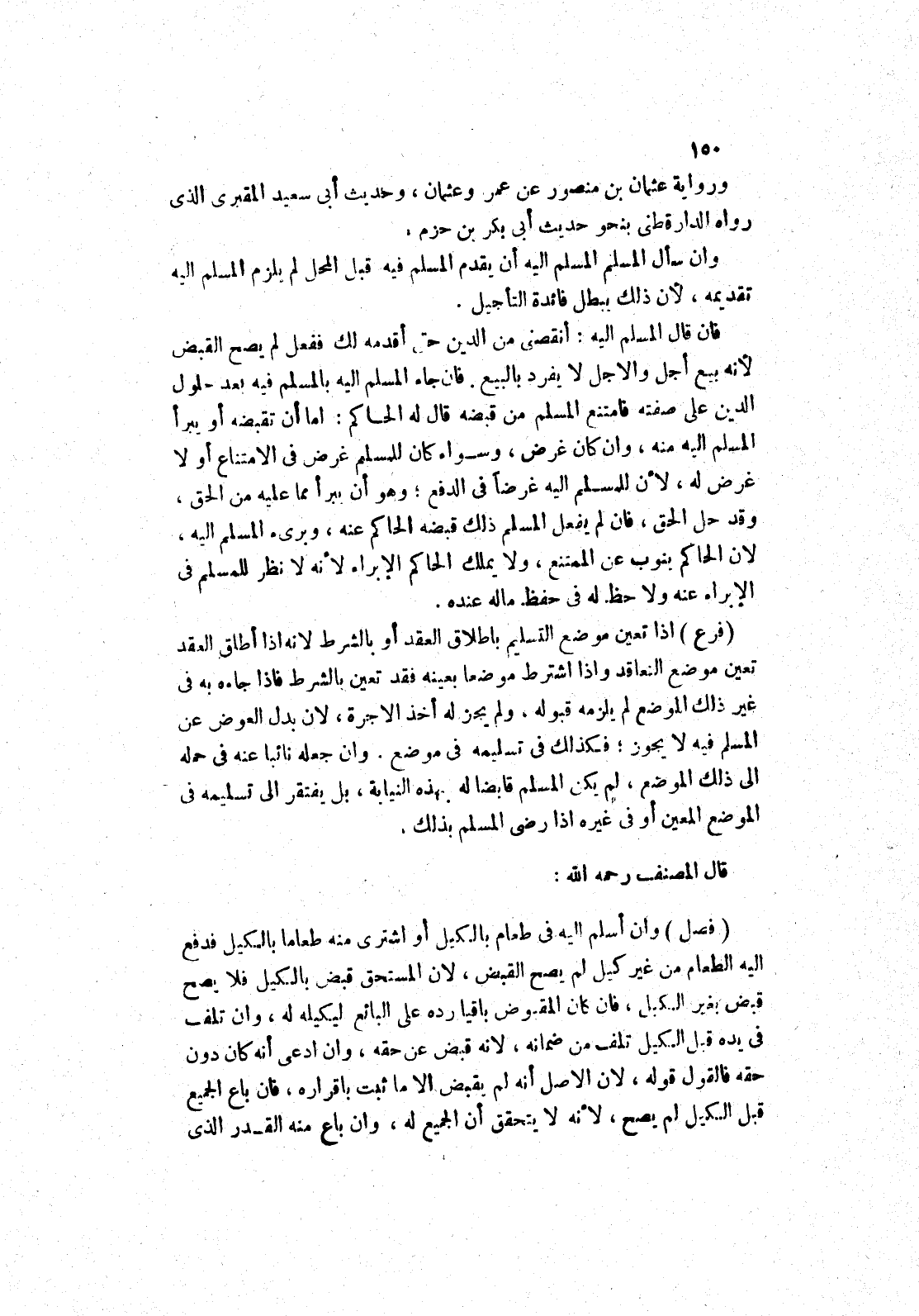 فان جاء المسلم إليه بالمسلم فيه بعد حلول الدين على صفته فامتنع المسلم من قبضه قال له الحاكم: اما أن تقبضه أو يبرأ المسلم إليه منه، وان كان غرض، وسواء كان للمسلم غرض في الامتناع أو لا غرض له، لان للمسلم إليه غرضا في الدفع، وهو أن يبرأ مما عليه من الحق، وقد حل الحق، فان لم يفعل المسلم ذلك قبضه الحاكم عنه، وبرئ المسلم إليه، لان الحاكم ينوب عن الممتنع، ولا يملك الحاكم الابراء لانه لا نظر للمسلم في الابراء عنه ولا حظ له في حفظ ماله عنده.