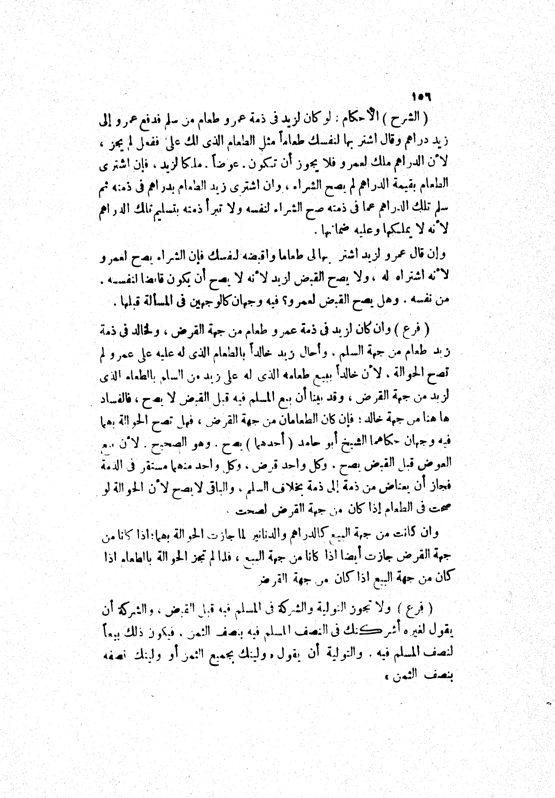 (الشرح) الاحكام: لو كان لزيد في ذمة عمرو طعام من سلم فدفع عمرو إلى زيد دراهم وقال اشتر بها لنفسك طعاما مثل الطعام الذى لك على ففعل لم يجز، لان الدراهم ملك لعمرو فلا يجوز أن تكون.