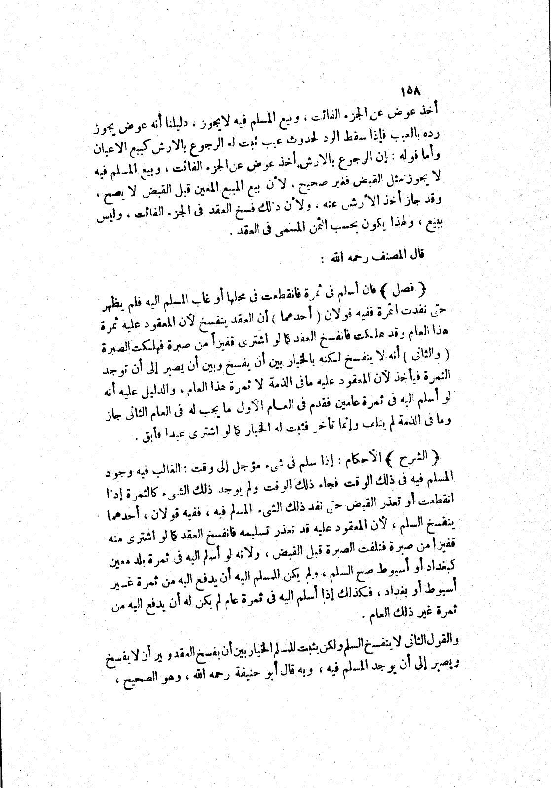 (الشرح) الاحكام: إذا سلم في شئ مؤجل إلى وقت: الغالب فيه وجود المسلم فيه في ذلك الوقت فجاء ذلك الوقت ولم يوجد ذلك الشئ كالثمرة إذا انقطعت أو تعذر القبض حتى نفد ذلك الشئ المسلم فيه، ففيه قولان، أحدهما ينفسخ السلم، لان المعقود عليه قد تعذر تسليمه فانفسخ العقد كما لو اشترى منه قفيزا من صبرة فتلفت الصبرة قبل القبض، ولانه لو أسلم إليه في ثمرة بلد معين كبغداد أو أسيوط صح السلم، ولم يكن للمسلم إليه أن يدفع إليه من ثمرة غير أسيوط أو بغداد، فكذلك إذا أسلم إليه في ثمرة عام يكن له أن يدفع إليه من ثمرة غير ذلك العام.