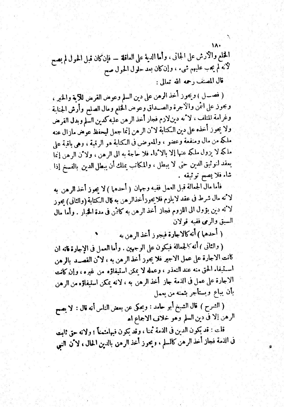 بأن يباع ويستأجر بثمنه من يعمل (الشرح) قال الشيخ أبو حامد: ويحكى عن بعض الناس أنه قال، لا يصح الرهن إلا في دين السلم وهو خلاف الاجماع اه قلت: قد يكون الدين في الذمة ثمنا، وقد يكون فيها مثمنا، ولانه حق ثابت في الذمة فجاز أخذ الرهن كالسلم، ويجوز أخذ الرهن بالدين الحال، لان النبي