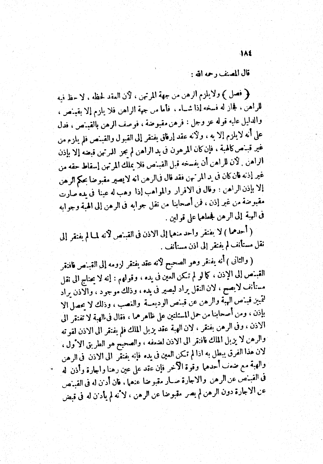 أنه يفتقر وهو الصحيح لانه عقد يفتقر لزومه إلى القبض فافتقر القبض إلى الاذن، كما لو لم تكن العين في يده، وقولهم: إنه لا يحتاج إلى نقل مستأنف لا يصح، لان النقل يراد ليصير في يده، وذلك موجود، والاذن يراد لتمييز قبض الهبة والرهن عن قبض الوديعة والغصب، وذلك لا يحصل الا بإذن، ومن أصحابنا من حمل المسئلتين على ظاهرهما، فقال في الهبة لا تفتقر إلى الاذن، وفى الرهن يفتقر، لان الهبة عقد يزيل الملك فلم يفتقر إلى الاذن لقوته والرهن لا يزيل الملك فافتقر إلى الاذن لضعفه، والصحيح هو الطريق الاول، لان هذا الفرق يبطل به إذا لم تكن العين في يده فإنه يفتقر إلى الاذن في الرهن والهبة مع ضعف أحدهما وقوة الآخر فإن عقد على عين رهنا واجارة وأذن له في القبض عن الرهن والاجارة صار مقبوضا عنهما، فان أذن له في القبض عن الاجارة دون الرهن لم يصر مقبوضا عن الرهن، لانه لم يأذن له في قبض