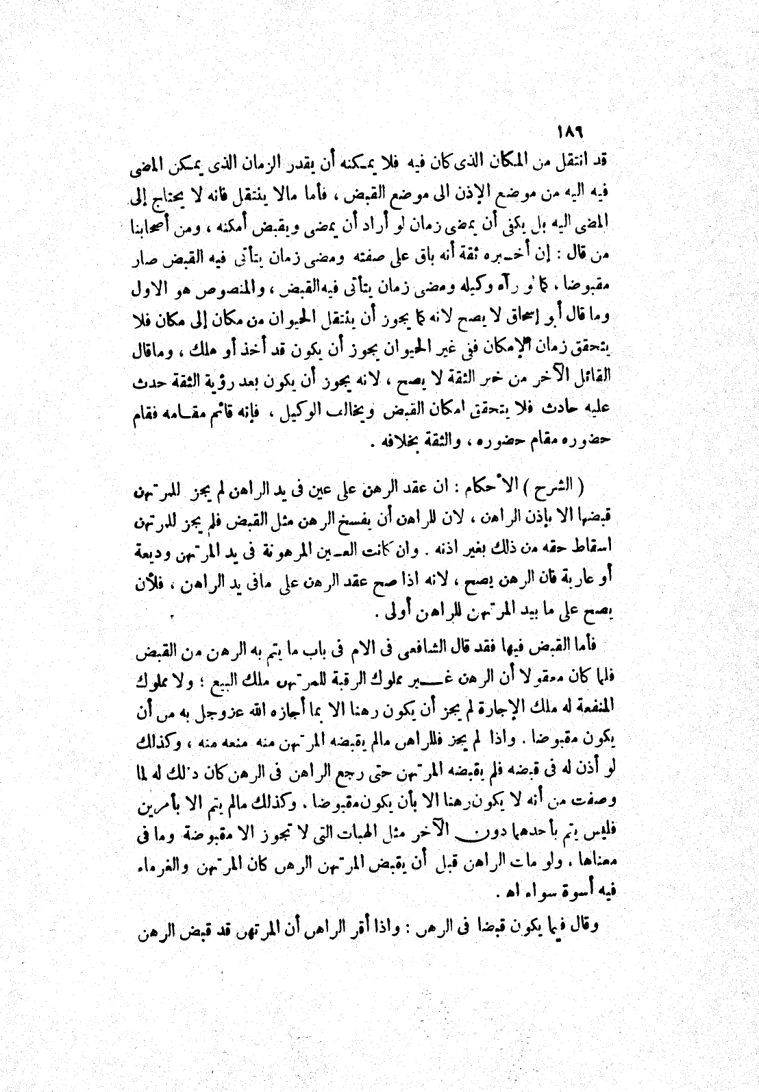 (الشرح) فأما القبض فيها فقد قَالَ الشَّافِعِيُّ فِي الْأُمِّ فِي بَابِ مَا يتم به الرهن من القبض فلما كان معقولا أن الرهن غير مملوك الرقبة للمرتهن ملك البيع، ولا مملوك المنفعة له ملك الاجارة لم يجز أن يكون رهنا الا بما أجازه الله عز وجل به من أن يكون مقبوضا.