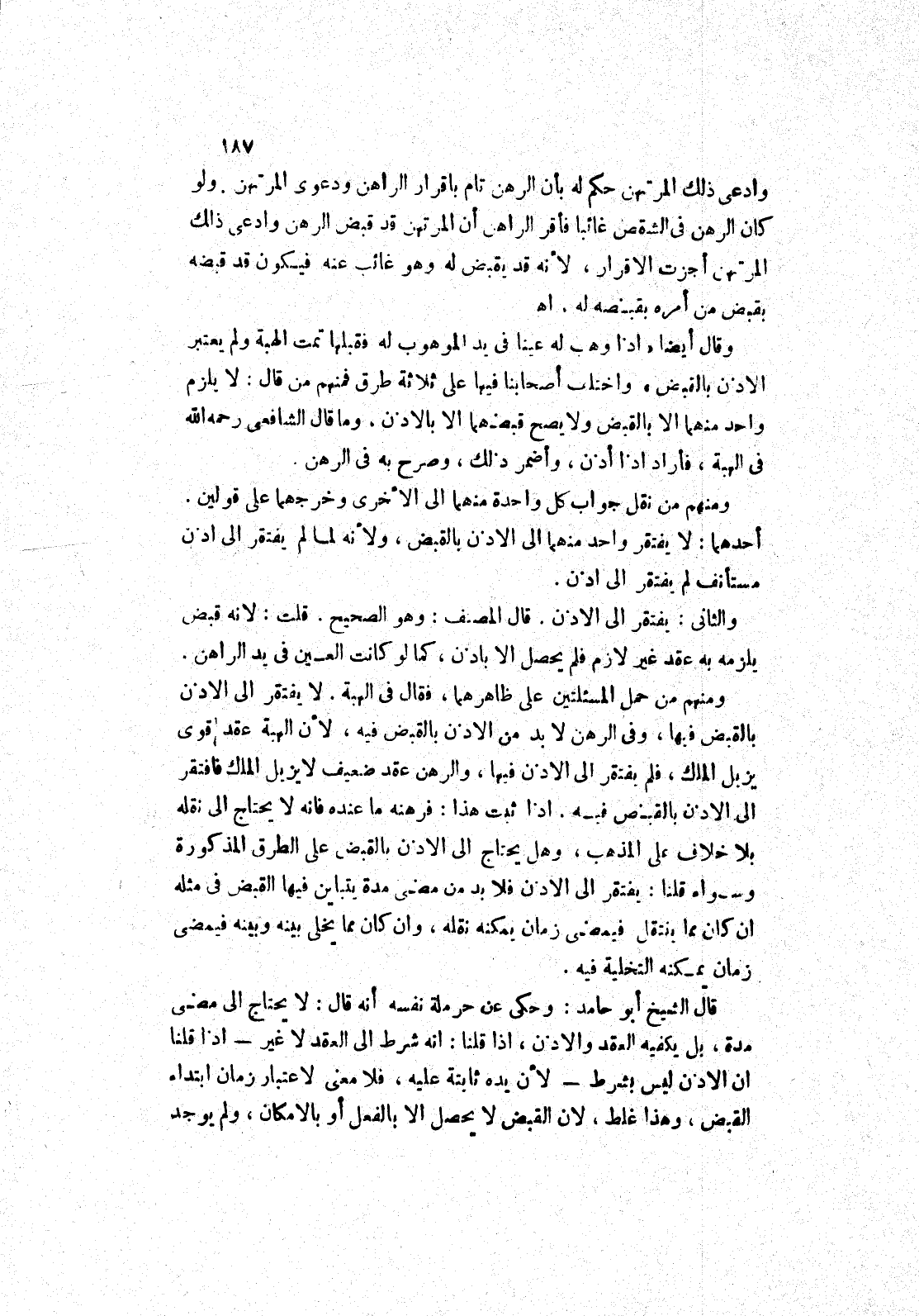 اه وقال أيضا " إذا وهب له عينا في يد الموهوب له فقبلها تمت الهبة ولم يعتبر الاذن بالقبض " واختلف أصحابنا فيها عَلَى ثَلَاثَةِ طُرُقٍ فَمِنْهُمْ مَنْ قَالَ: لَا يلزم واحد منهما الا بالقبض ولا يصح قبضهما الا بالاذن، وما قال الشافعي رحمه الله في الهبة، فأراد إذا أذن، وأضمر ذلك، وصرح به في الرهن.