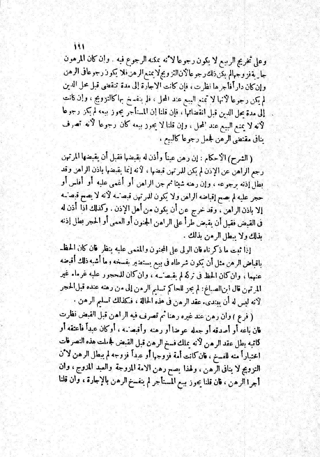 وان كان المرهون جارية فزوجها لم يكن ذلك رجوعا لان التزويج لا يمنع الرهن فلا يكون رجوعا في الرهن وإن كان دارا فأجرها نظرت، فإن كانت الاجارة إلى مدة تنقضي قبل محل الدين لم يكن رجوعا لانها لا تمنع البيع عند المحل، فلم ينفسخ بها كالتزويج، وإن كانت إلى مدة يحل الدين قبل انقضائها، فإن قلنا إن المستأجر يجوز بيعه لم يكن رجوعا لانه لا يمنع البيع عند المحل، وإن قلنا لا يجوز بيعه كان رجوعا لانه تصرف ينافى مقتضى الرهن فجعل رجوعا كالبيع.