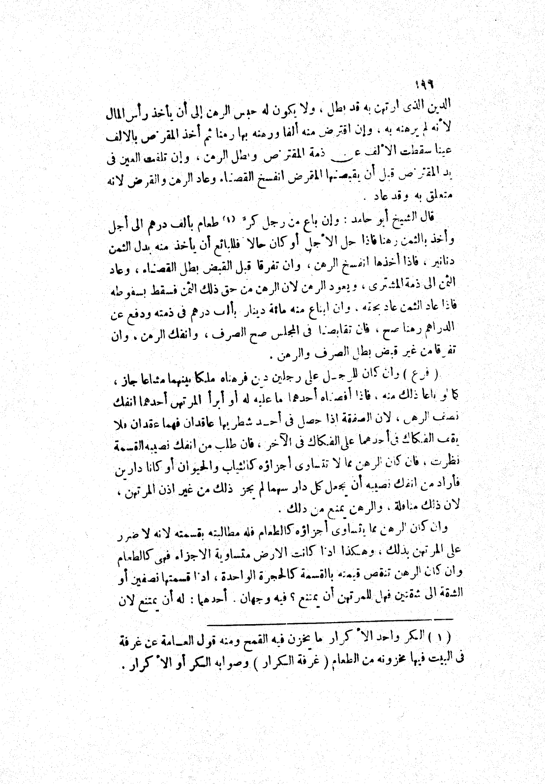 قال الشيخ أبو حامد: وإن باع من رجل كر (1) طعام بألف درهم إلى أجل وأخذ بالثمن رهنا فإذا حل الاجل أو كان حالا فللبائع أن يأخذ منه بدل الثمن دنانير، فإذا أخذها انفسخ الرهن، وان تفرقا قبل القبض بطل القضاء، وعاد الثمن إلى ذمة المشترى، ويعود الرهن لان الرهن من حق ذلك الثمن فسقط بسقوطه فإذا عاد الثمن عاد بحقه، وان ابتاع منه مائة دينار بألف درهم في ذمته ودفع عن الدراهم رهنا صح، فان تقابضا في المجلس صح الصرف، وانفك الرهن، وان تفرقا من غير قبض بطل الصرف والرهن.
