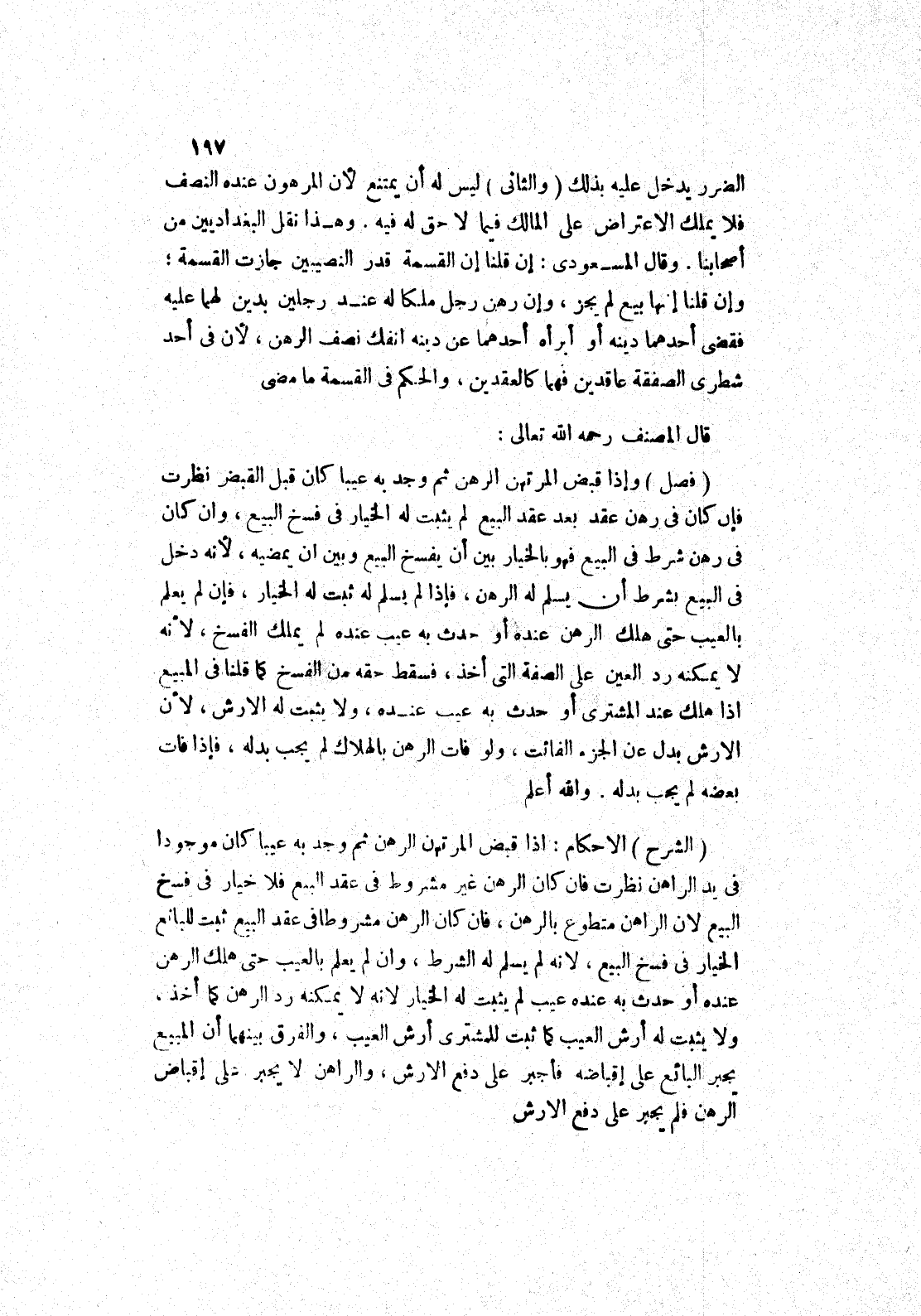 وقال المسعودي: إن قلنا إن القسمة قدر النصيبين جازت القسمة، وإن قلنا إنها بيع لم يجز، وإن رهن رجل ملكا له عند رجلين بدين لهما عليه فقضى أحدهما دينه أو أبرأه أحدهما عن دينه انفك نصف الرهن، لان في أحد شطرى الصفقة عاقدين فهما كالعقدين، والحكم في القسمة ما مضى