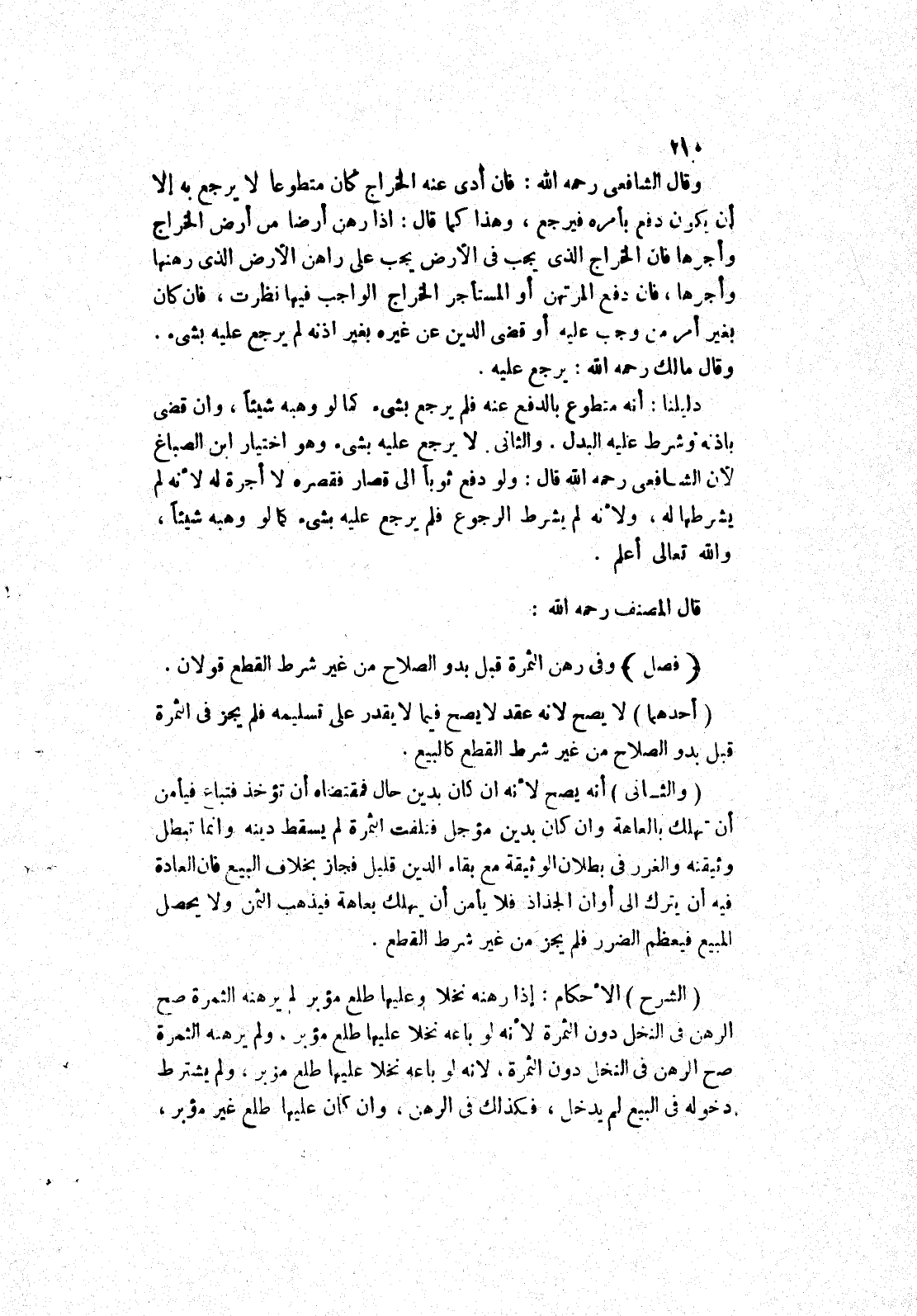 وقال الشافعي رحمه الله: فان أدى عنه الخراج كان متطوعا لا يرجع به إلا أن يكون دفع بأمره فيرجع، وهذا كما قال: إذا رهن أرضا من أرض الخراج وأجرها فان الخراج الذى يجب في الارض يجب على راهن الارض الذى رهنها وأجرها، فان دفع المرتهن أو المستأجر الخراج الواجب فيها نظرت، فان كان بغير أمر من وجب عليه أو قضى الدين عن غيره بغير اذنه لم يرجع عليه بشئ.