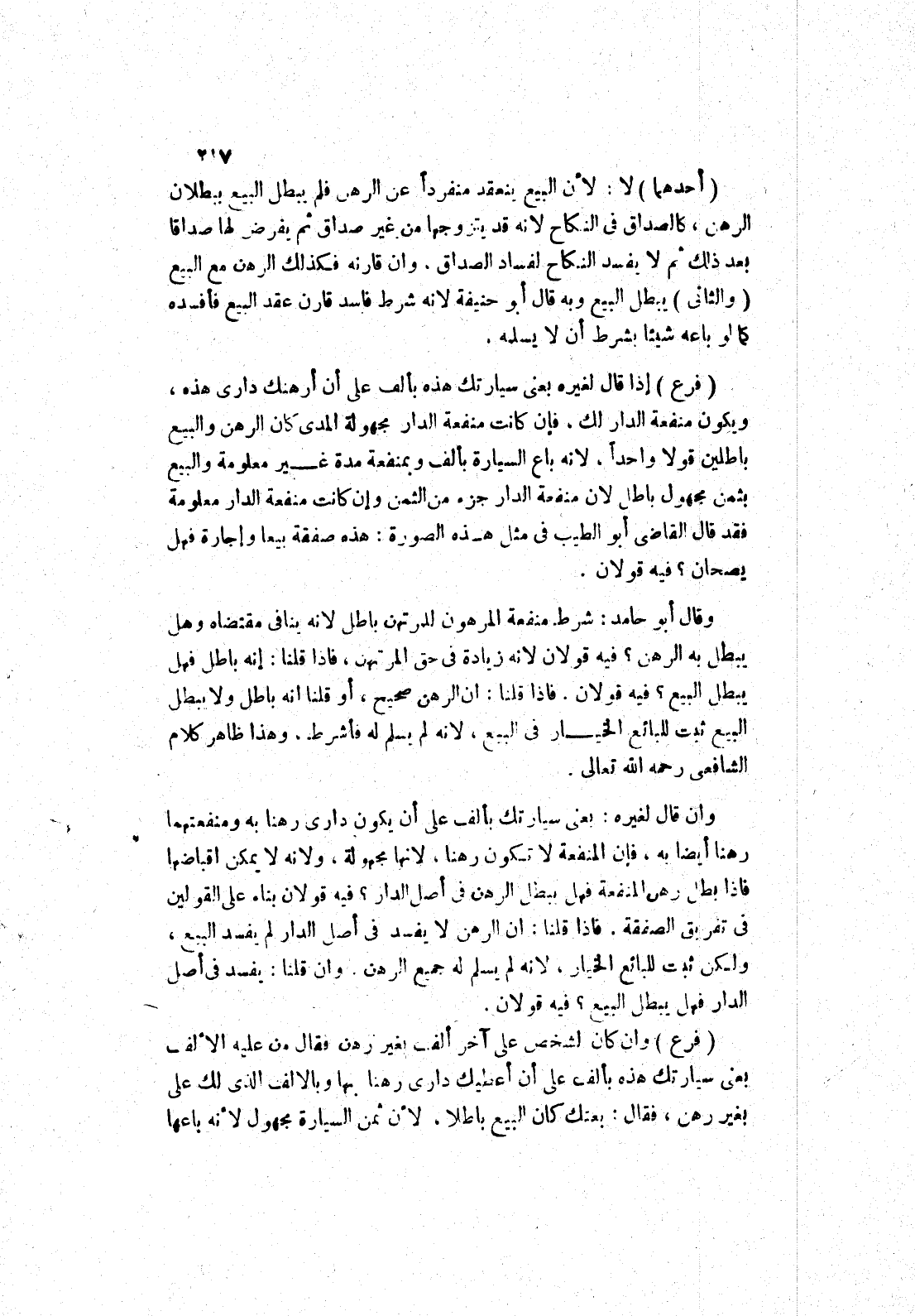 وقال أبو حامد: شرط منفعة المرهون للمرتهن باطل لانه ينافى مقتضاه وهل يبطل به الرهن؟ فيه قولان لانه زيادة في حق المرتهن، فإذا قلنا: إنه باطل فهل يبطل البيع؟ فيه قولان.