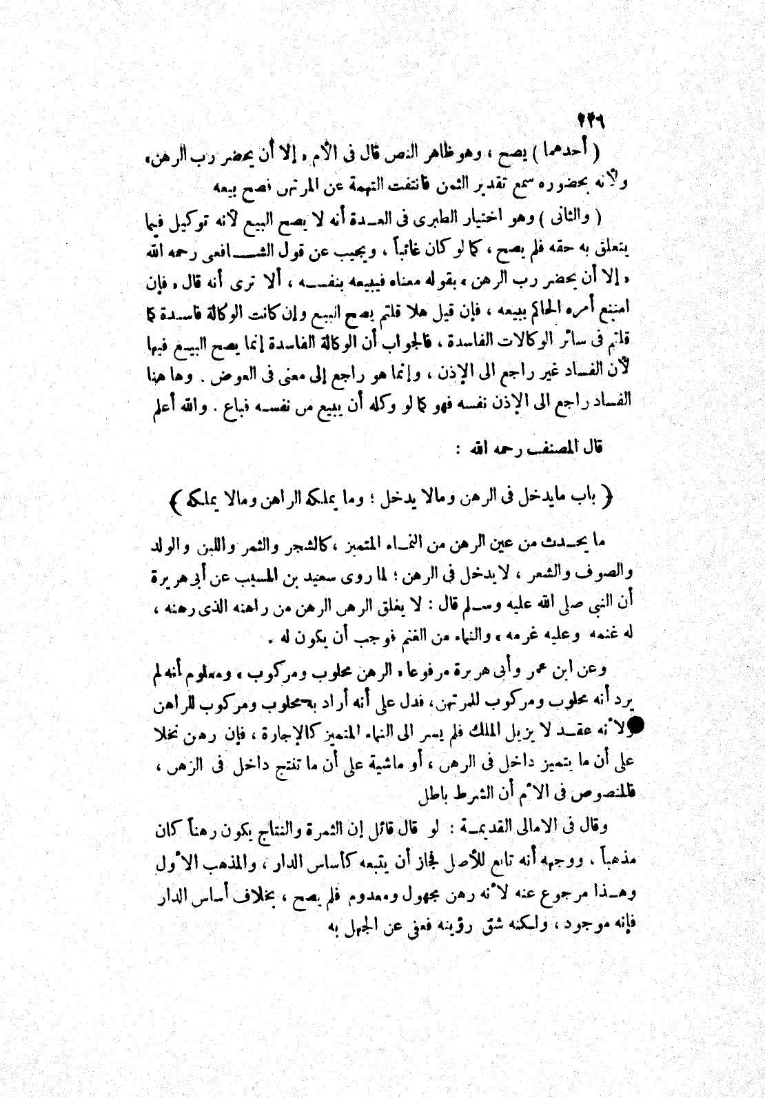 (باب ما يدخل في الرهن ومالا يدخل، وما يملكه الراهن وما لا يملكه)
