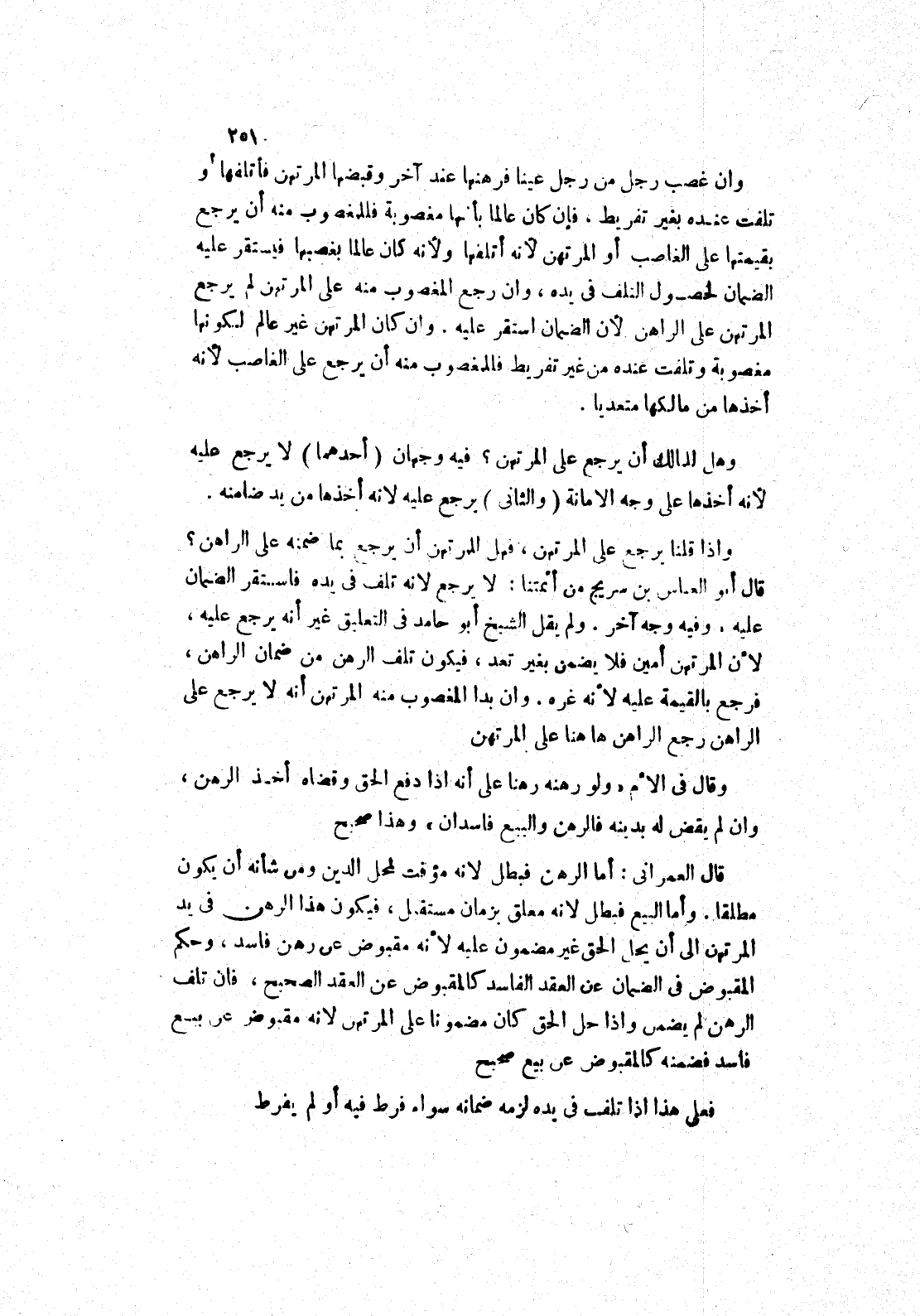 وإذا قلنا يرجع على المرتهن، فهل للمرتهن أن يرجع بما ضمنه على الراهن؟ قال أبو العباس بن سريج من أئمتنا: لا يرجع لانه تلف في يده فاستقر الضمان عليه.
