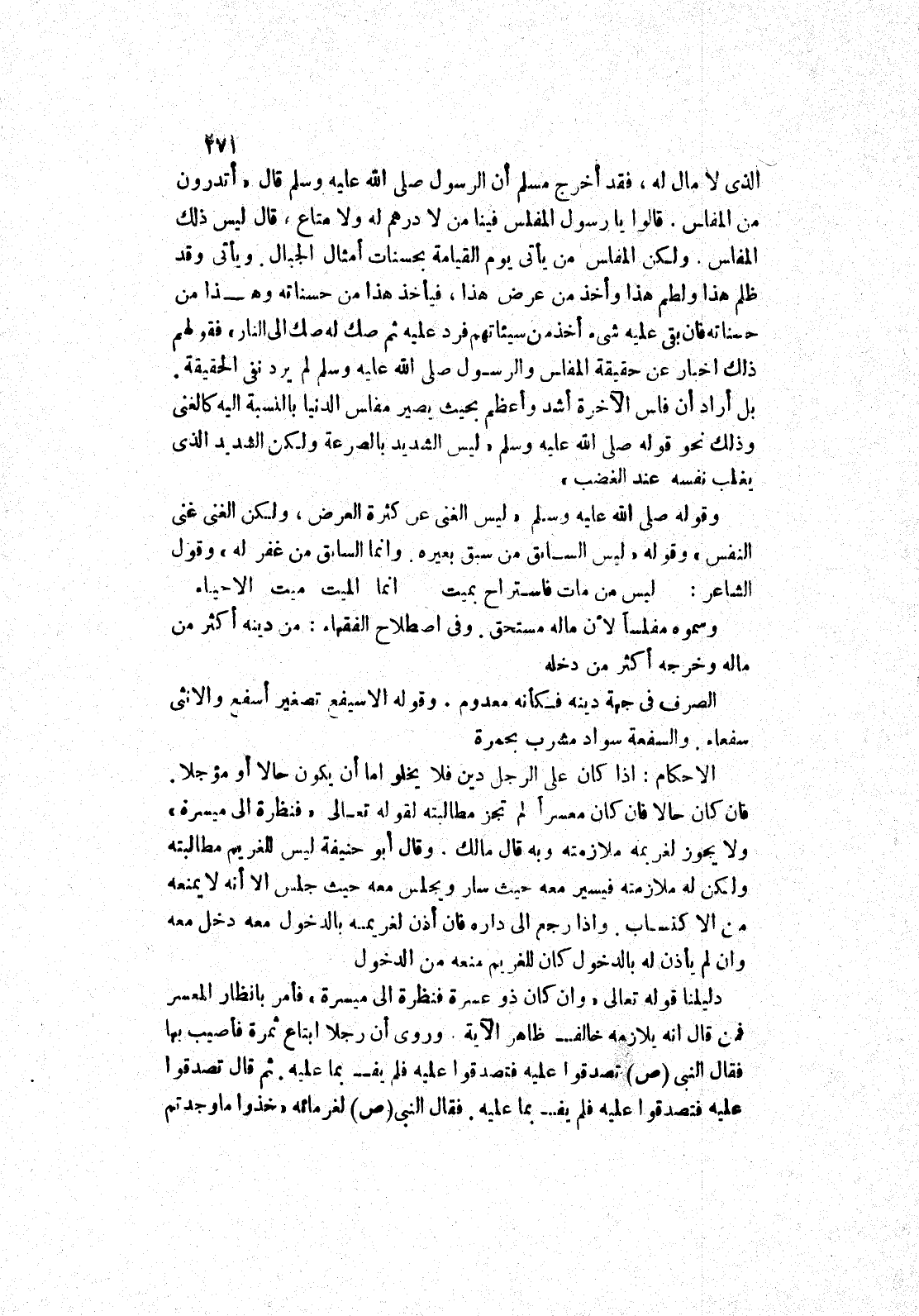 الذى لا مال له، فقد أخرج مسلم أن الرسول صلى الله عليه وسلم قال " أتدرون من المفلس.