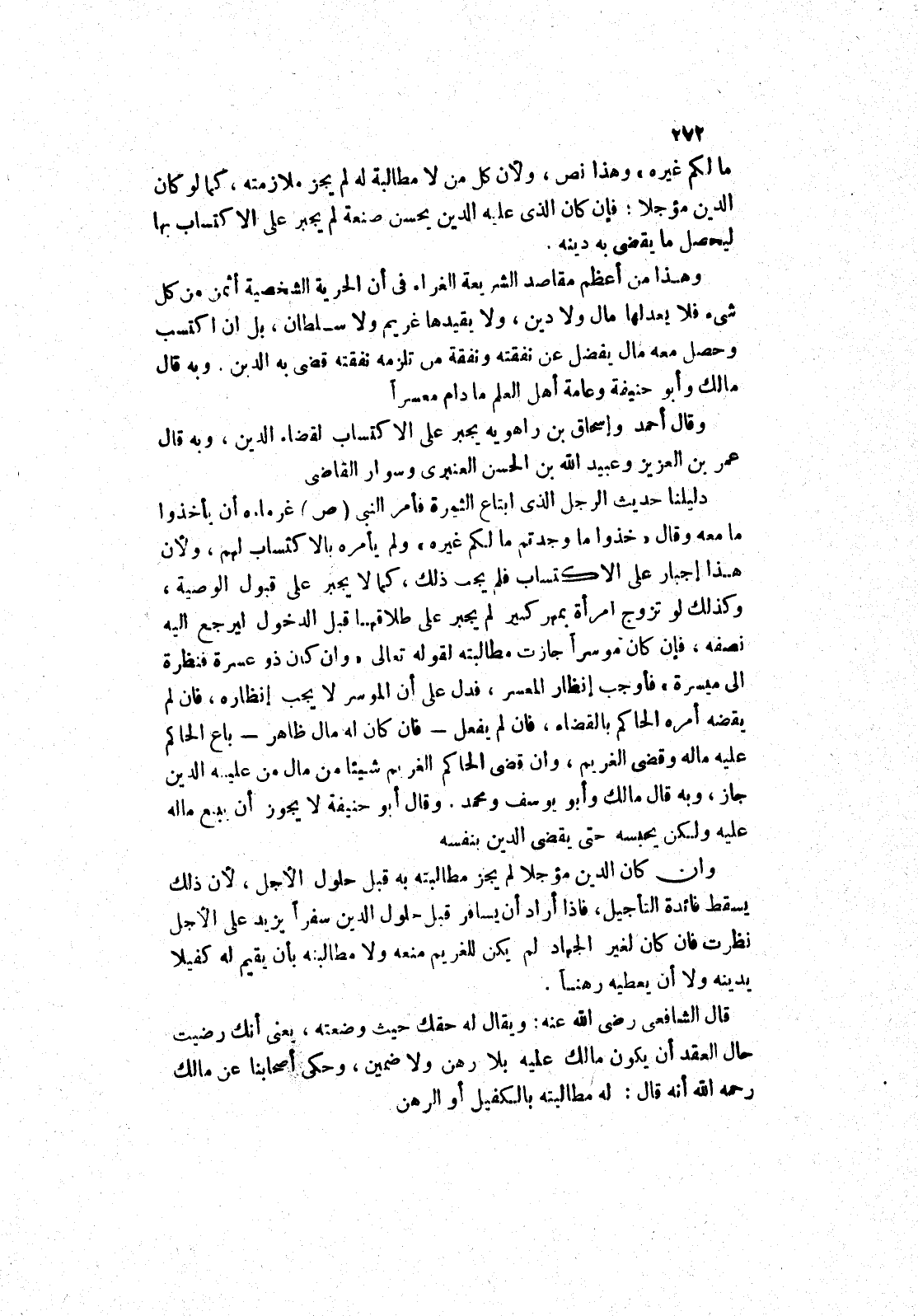 وهذا من أعظم مقاصد الشريعة الغراء في أن الحرية الشخصية أثمن من كل شئ فلا يعدلها مال ولا دين، ولا يقيدها غريم ولا سلطان، بل ان اكتسب وحصل معه مال يفضل عن نفقته ونفقة من تلزمه نفقته قضى به الدين.