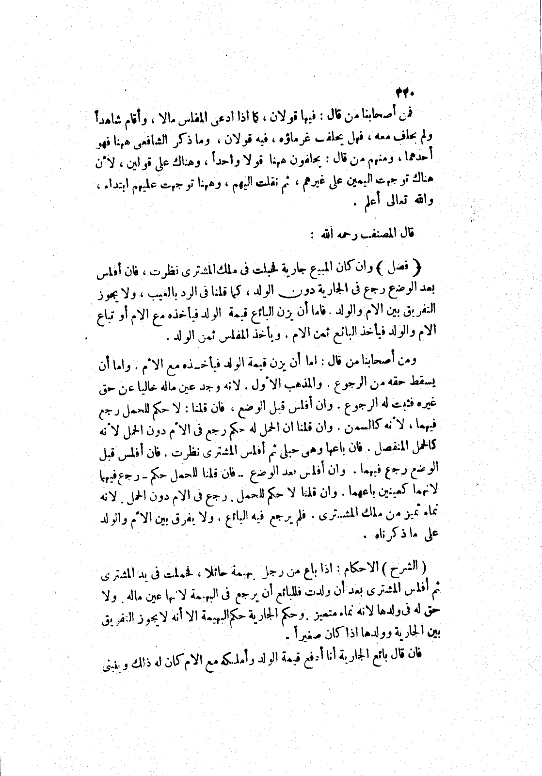 فاما أن يزن البائع قيمة الولد فيأخذه مع الام أو تباع الام والولد فيأخذ البائع ثمن الام.