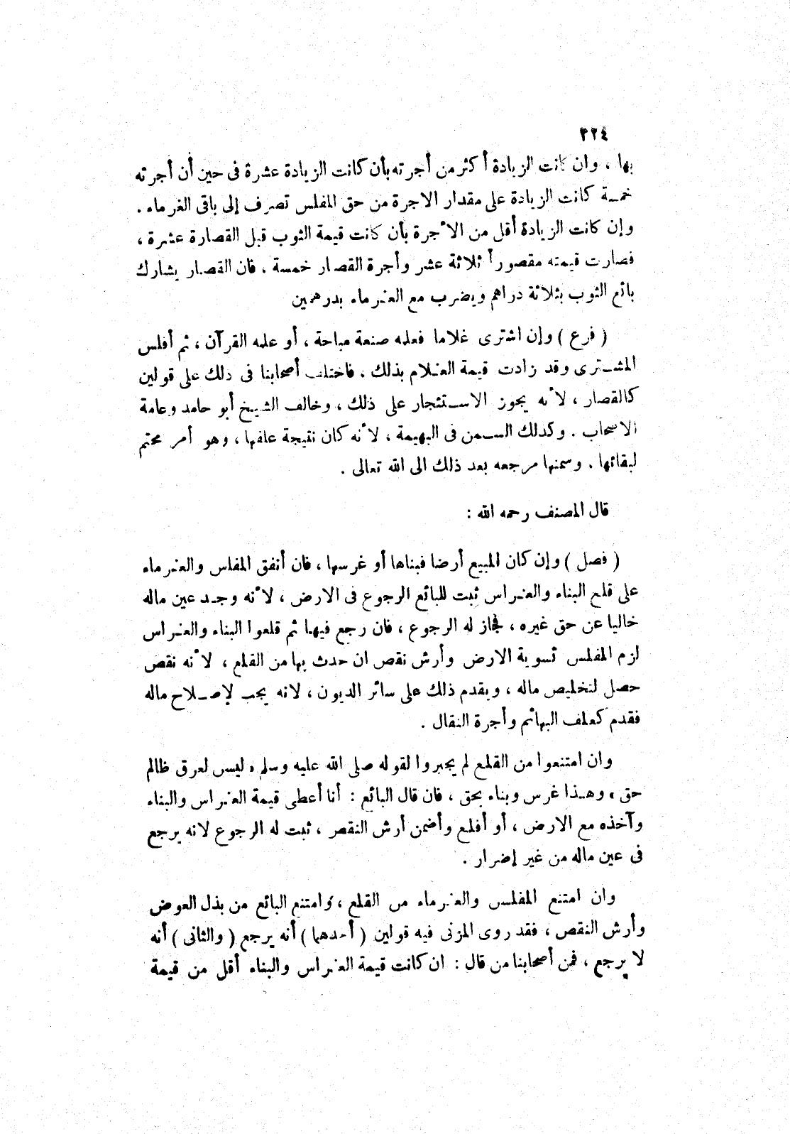 وإن اشترى غلاما فعله صنعة مباحة، أو علمه القران، ثم أفلس المشترى وقد زادت قيمة الغلام بذلك، فاختلف أصحابنا في ذلك على قولين كالقصار، لانه يجوز الاستئجار على ذلك، وخالف الشيخ أبو حامد وعامة والاصحاب.