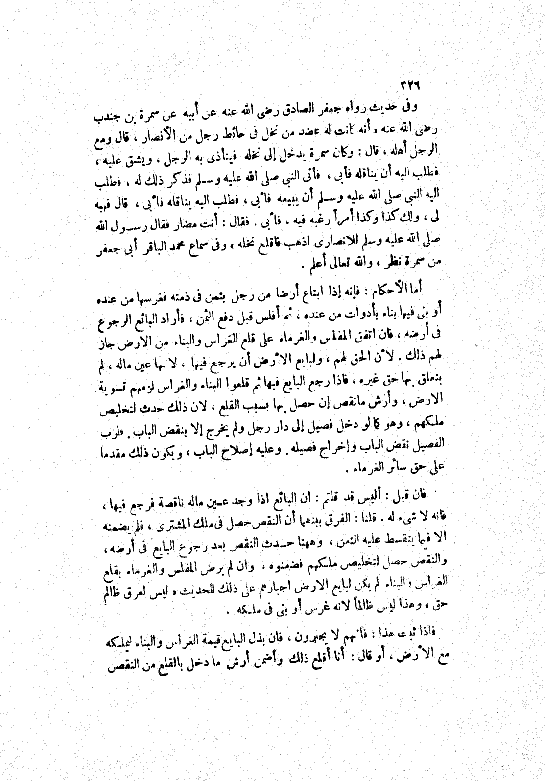 وفى حديث رواه جعفر الصادق رضى الله عنه عن أبيه عَنْ سَمُرَةَ بْنِ جُنْدُبٍ رَضِيَ اللَّهُ عَنْهُ " أنه كانت له عضد من نخل في حائط رجل من الانصار، قال ومع الرجل أهله، قال: وكان سمرة يدخل إلى نخله فيتأذى به الرجل، ويشق عليه، فطلب إليه أن يناقله فأبى، فَأَتَى النَّبِيَّ صَلَّى اللَّهُ عَلَيْهِ وَسَلَّمَ فَذَكَرَ ذلك له، فطلب إليه النبي صلى الله عليه وسلم أن يبيعه فأبى، فطلب إليه يناقله فأبى، قال فهبه لى، ولك كذا أمرا رغبه فيه، فأبى.