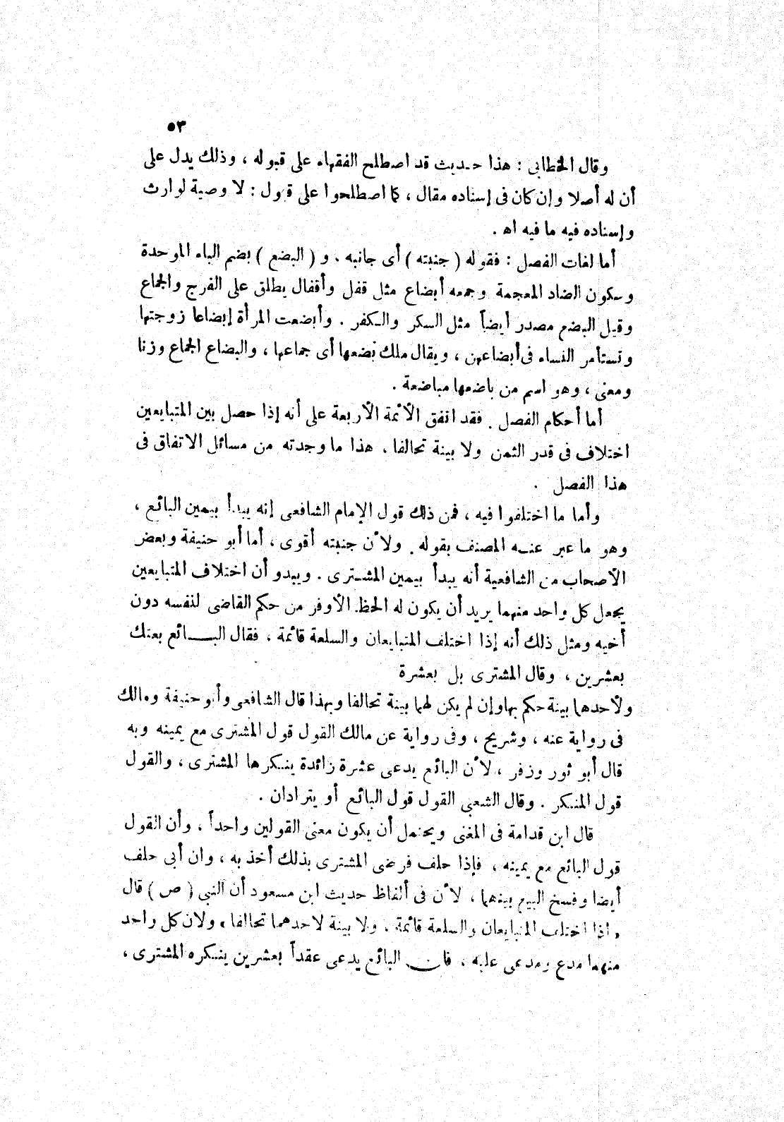 أما لغات الفصل: فقوله (جنبته) أي جانبه، و (البضع) بضم الباء الموحدة وسكون الضاد المعجمة وجمعه أبضاع مثل قفل وأقفال يطلق على الفرج والجماع وقيل البضع مصدر أيضا مثل السكر والكفر.