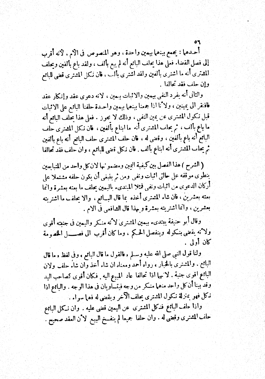 فافتقر إلى يمينين، ولانا إذا جمعنا بينهما بيمين واحدة حلفنا البائع على الاثبات قبل نكول المشترى عن يمين النفى، وذلك لا يجوز.