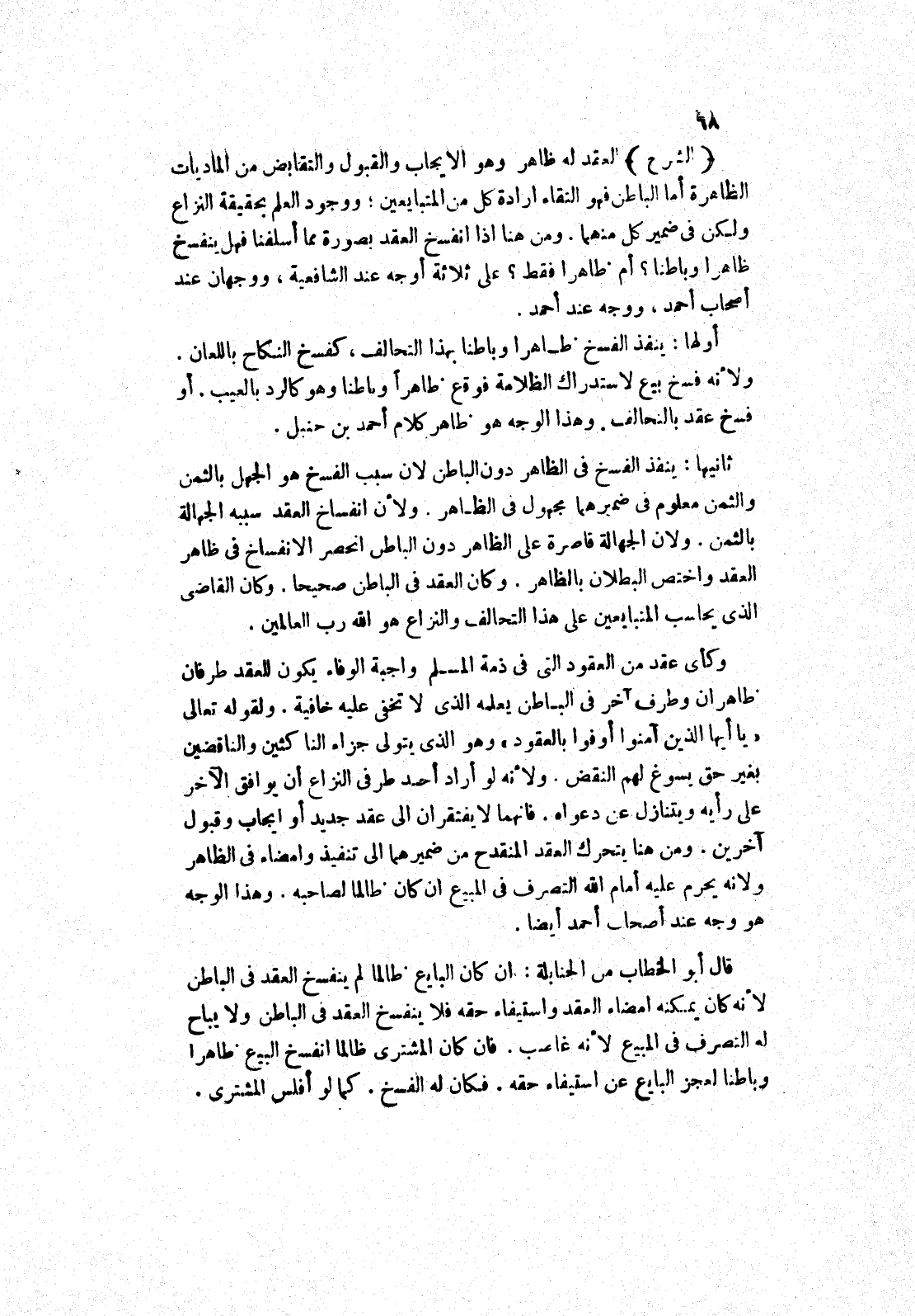 (الشرح) العقد له ظاهر وهو الايجاب والقبول والتقابض من الماديات الظاهرة أما الباطن فهو التقاء ارادة كل من المتبايعين، ووجود العلم بحقيقة النزاع ولكن في ضمير كل منهما.
