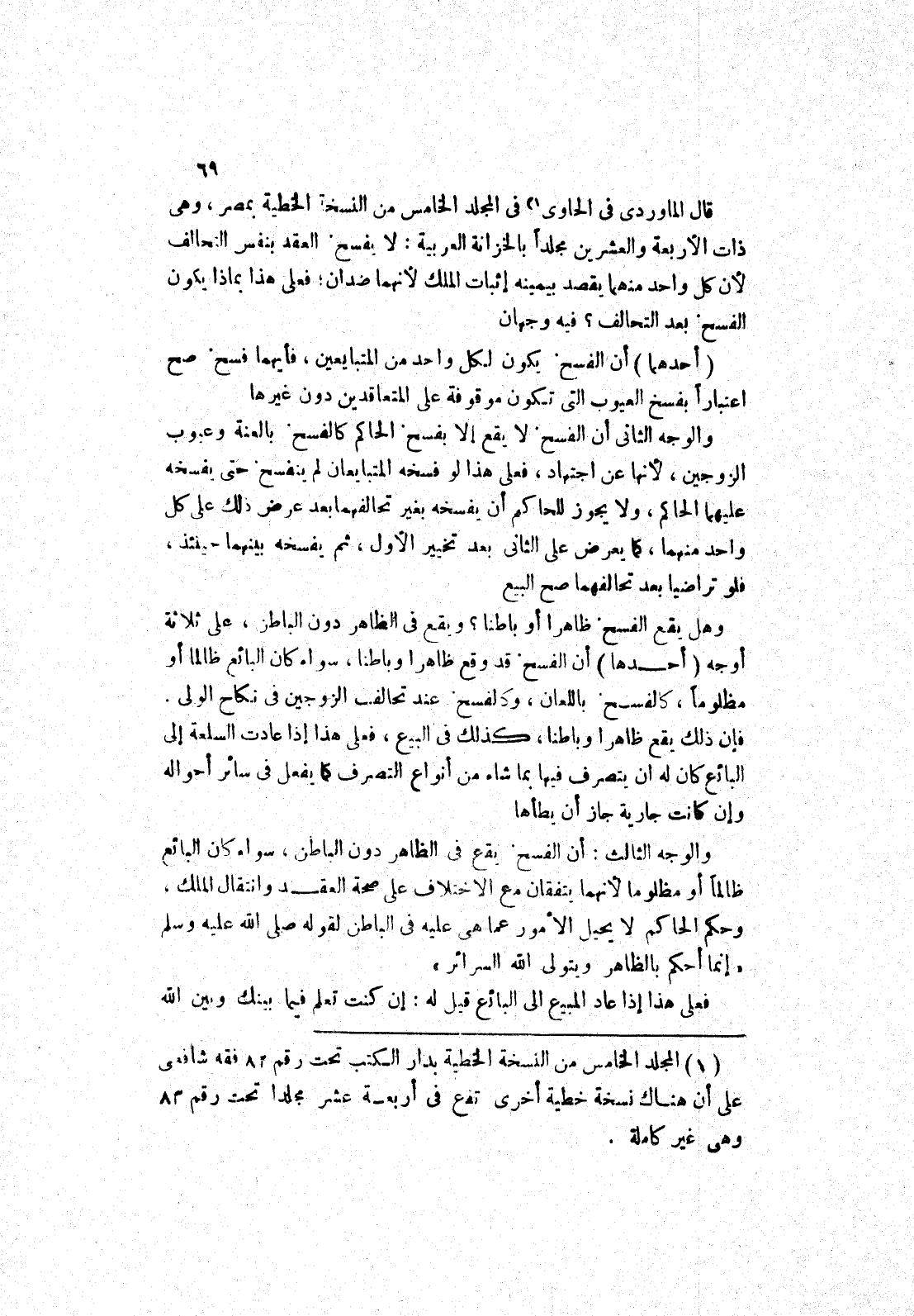 (1) المجلد الخامس من النسخة الخطية بدار الكتب تحت رقم 82 فقه شافعي على أن هناك نسخة خطية أخرى تقع في أربعة عشر مجلدا تحت رقم 83