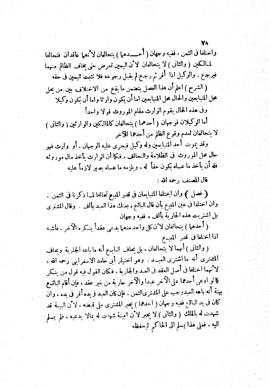 والوكيل إذا أقر ثم رجع لم يقبل رجوعه فلا تثبت اليمين في حقه (الشرح) اعلم أن هذا الفصل يتضمن ما يقع من الاختلاف بين من يحل محل المتبايعين والحال محل المتبايعين اما أن يكون وارثا واما أن يكون وكيلا وفى هذه الحال يقوم الوارث مقام الموروث قولا واحدا أما الوكيلان فوجهان