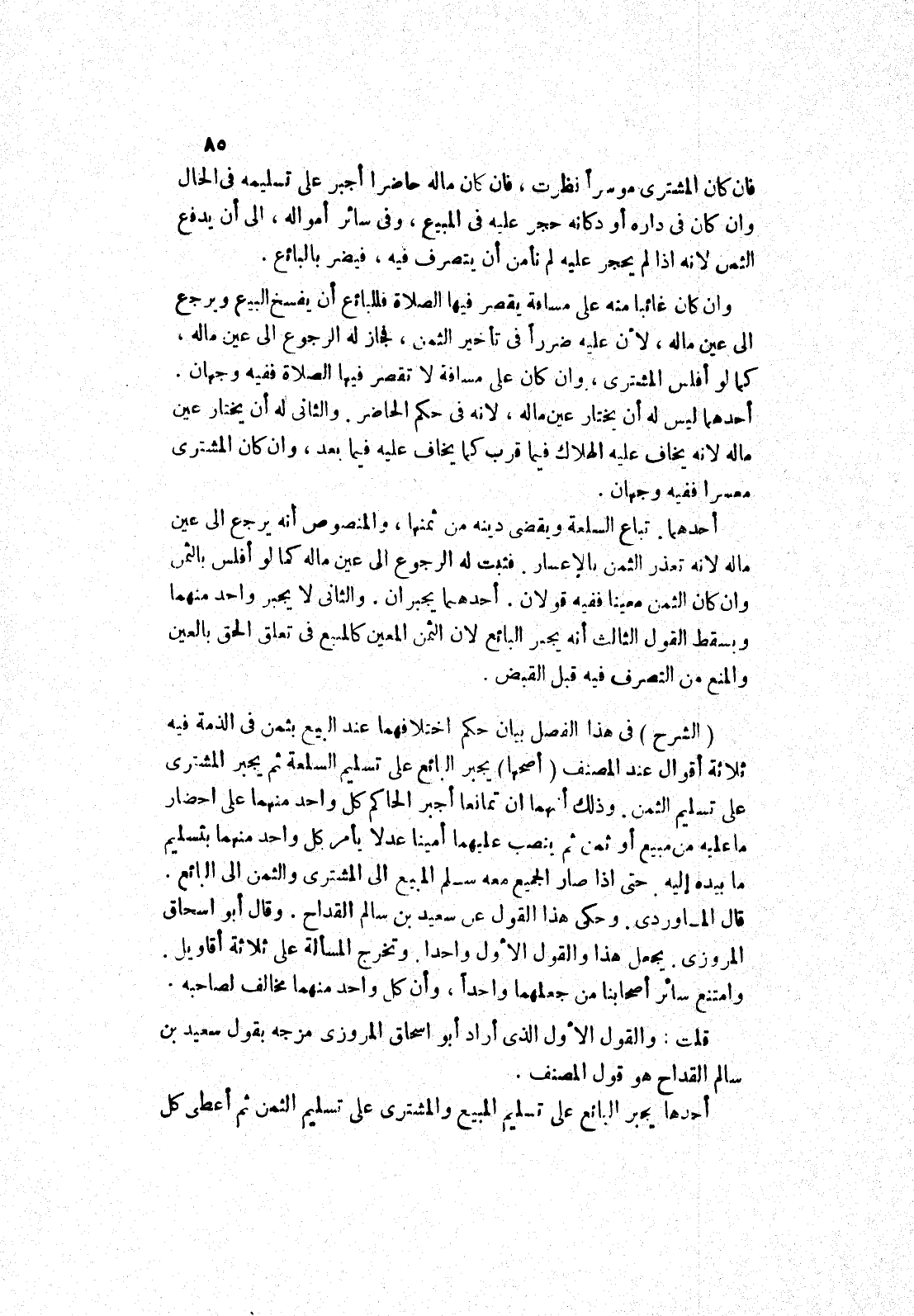 أحدها يجبر البائع على تسليم المبيع والمشترى على تسليم الثمن ثم أعطى كل